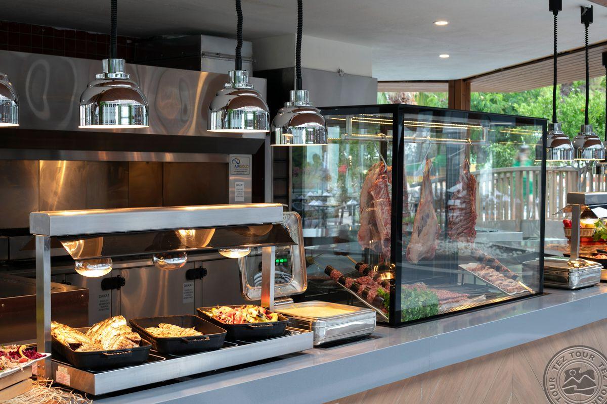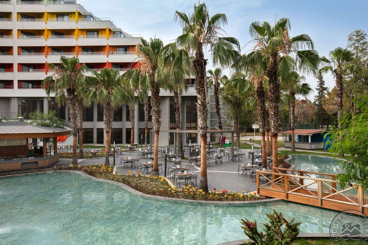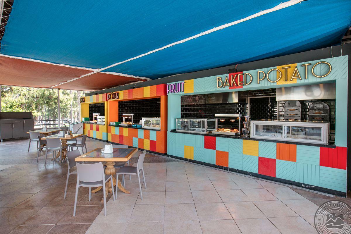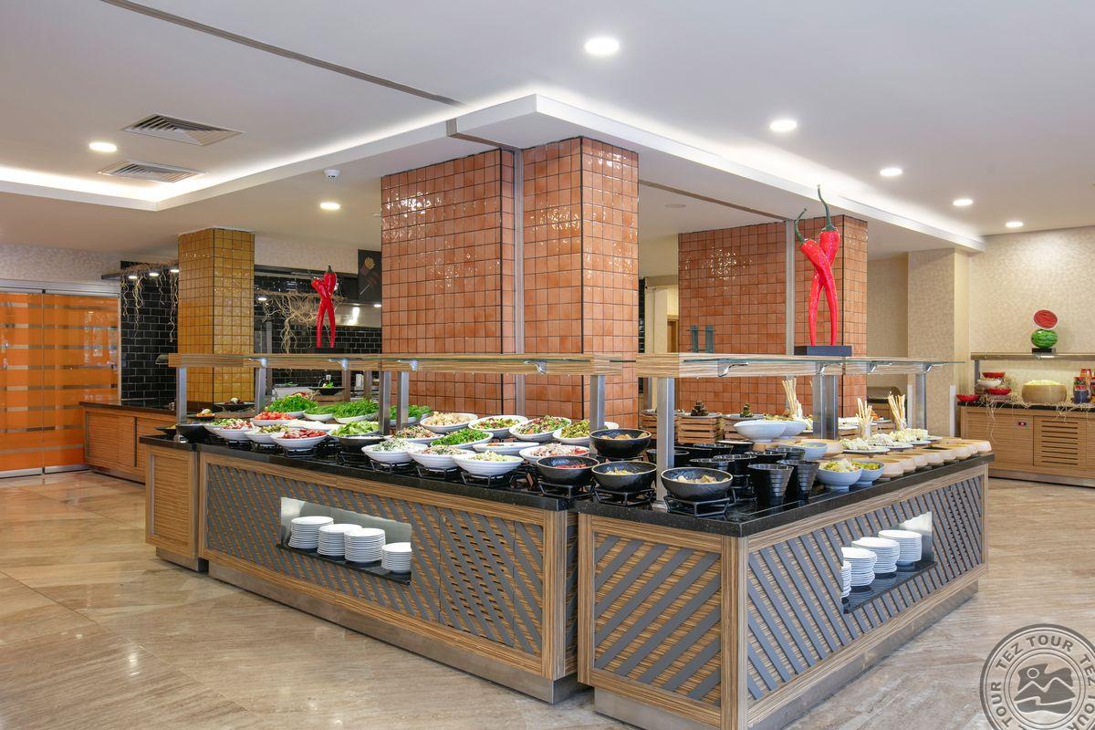 Территория:> рестораны: 1 (основной) бары: 7 крытые бассейны: 1 Интернет бесплатно бассейны: 2 (открытые) спа-центр (платно) конференц-залы: 2 (на 100–200 чел.) у бассейна полотенца: бесплатно у бассейна зонтики, шезлонги: бесплатно рестораны a la carte: 4 ((Стейк ресторан, Итальянский, Азиатский, Рыбный; по предварительной записи - платно)) кабинет врача (платно) водные горки: 3 Wi-Fi бесплатно парикмахерская (платно) магазины
