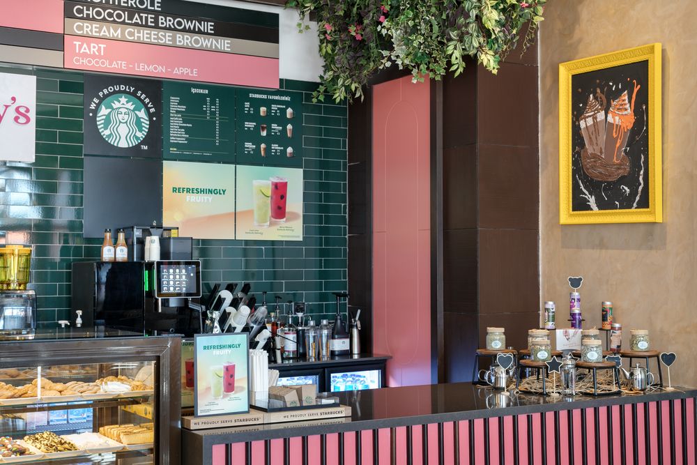 - КафеPatisserie (с 11:00 до 18:00)Pinky's Coffee House (Starbucks) (с 10:00 до 18:30)