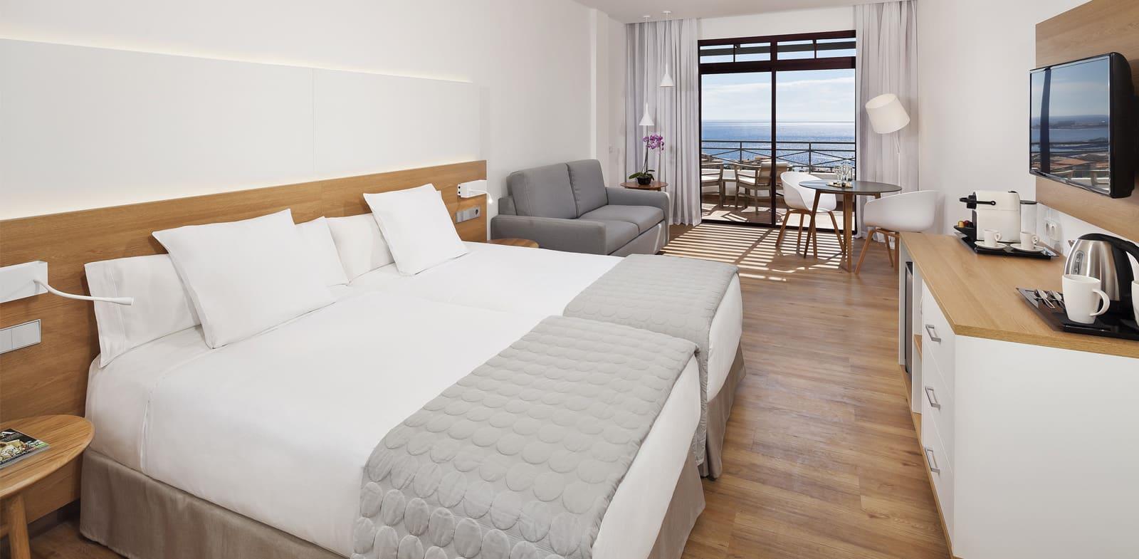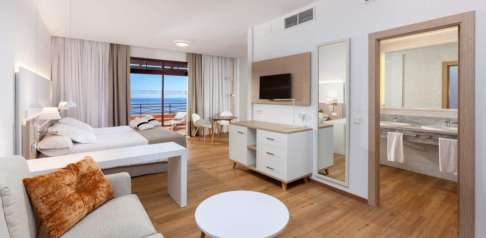 Описание номеров Melia Jardines Del Teide 5*:- ванна или душ- фен- тапочки, халаты (нет в Deluxe)- туалетные принадлежности ("Loewe" в Level Sea View)- меню подушек (в Level Sea View)- кондиционер- ТВ- телефон- Wi-fI (бесплатно)- сейф (бесплатно)- кофемашина Nespresso (в Level Sea View)- мини-бар (платно, по запросу)- глаженье одного предмента одежды за весь период проживания (только в Level Sea View - бесплатно)- приоритетное бронирование в Wellness-центр (только для Level Sea View)- меблированные балкон/терраса- принадлежности для чая и кофе (по заезду)- утюг и гладильная доска (в Level Sea View)- сервис в номер (платно)