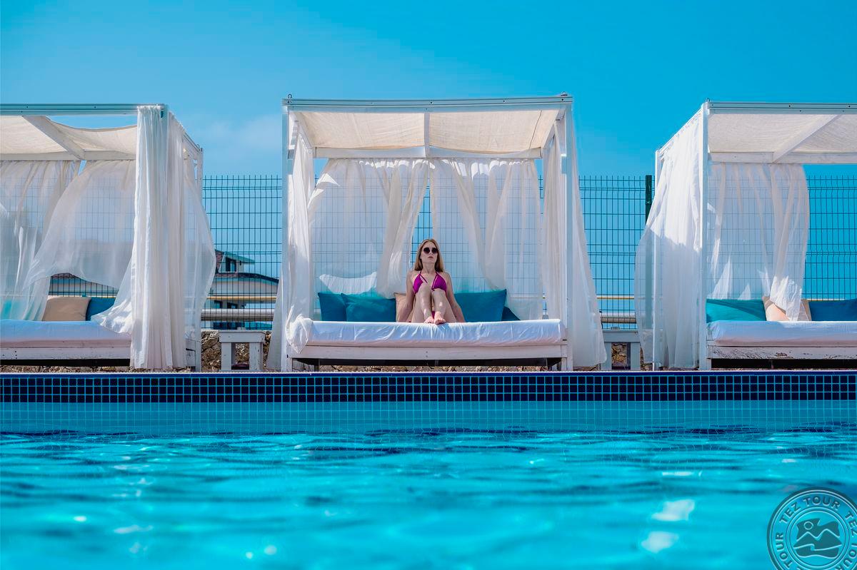 Пляж:> на пляже зонтики, шезлонги, матрасы: бесплатно на пляже полотенца: бесплатно (смена полотенец каждые два дня) бар на пляже: бесплатно собственный песчано-галечный (местами встречаются валуны)