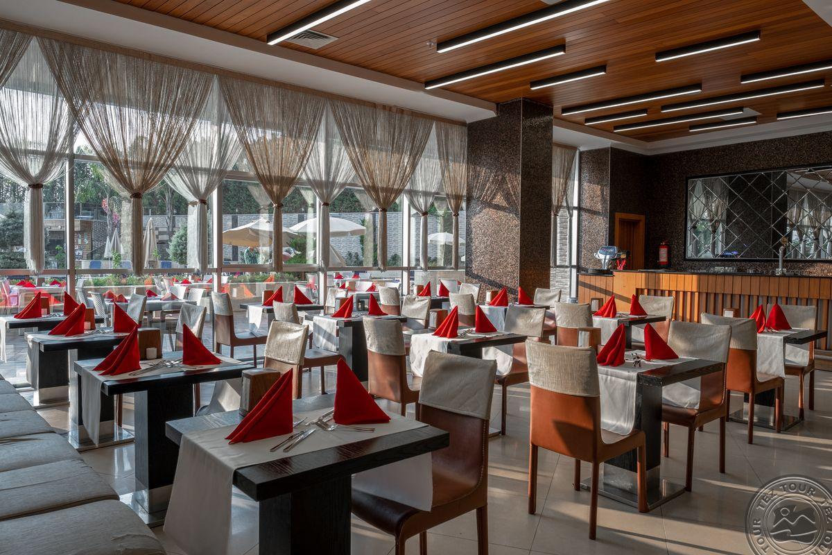 в 135 км от аэропорта г. Анталья, в 35 км от аэропорта Газипаша, в 5 км от г. Аланья, в 500 м через дорогу от собственного пляжа по подземному переходу.