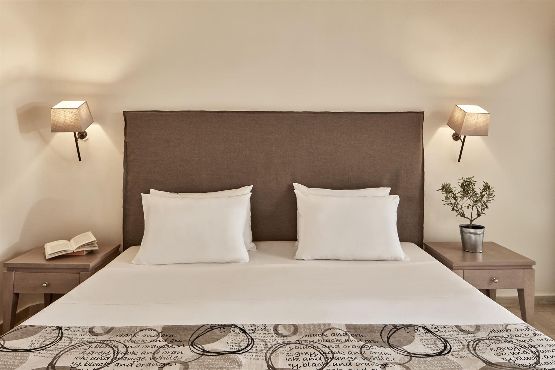 44 Upper floor Deck Sea view (25-30 кв.м) макс.разм. 3 чел, расположены в основном здании, однокомнатный номер.Балкон.В качестве доп.места предоставляется- софа.Вид на залив Мирабелло и город Агиос-Николаос.