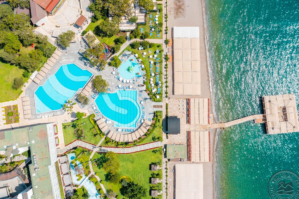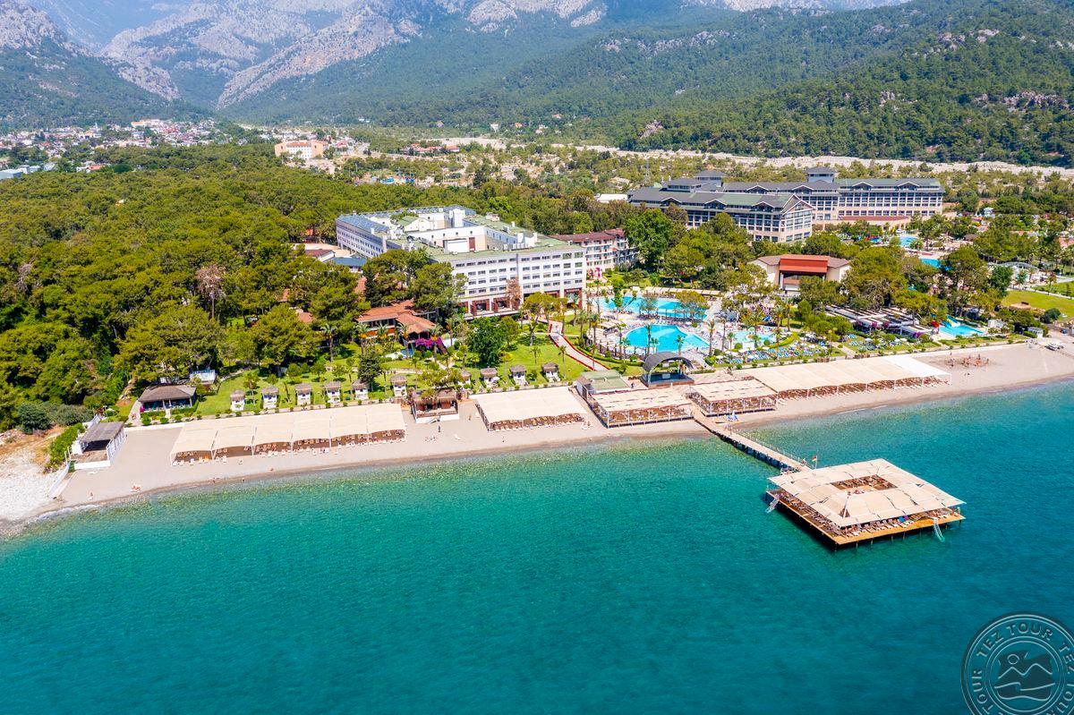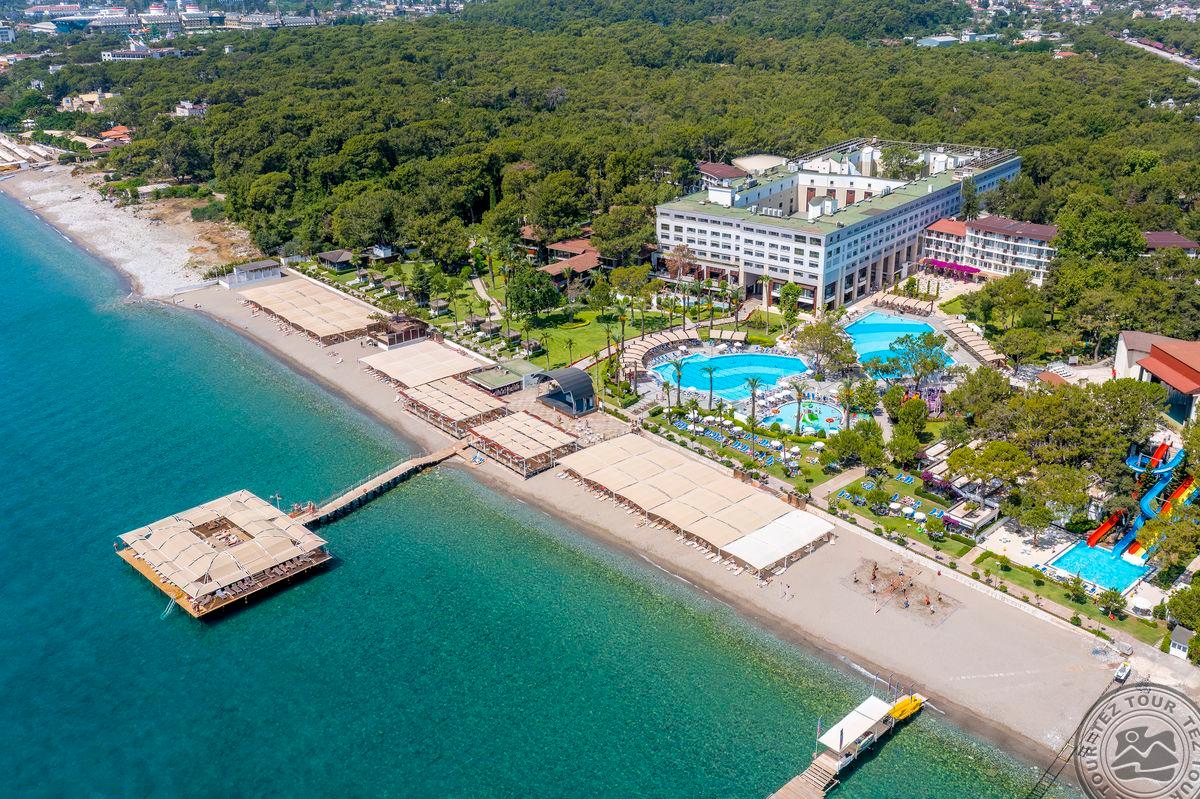 - Расположение: в 45 км от аэропорта г. Анталья, в 9 км от г. Кемер, в поселке Гёйнюк, на берегу моря. Отель: Построен в 1990 году, общая площадь 100 000 м2, последняя реновация в главном здании прошла зимой 2019/20 года. Отель состоит из основного 6-этажного здания и 3-этажного корпуса Garden Chalet. Всего 542 номера: 377 comfort standard room (из них 6 номера для людей с ограниченными возможностями, макс. 2+2 чел., 26–32 м2); 43 Eco Room (номера без определенного вида, могут быть на любом этаже, макс. 2+инфант