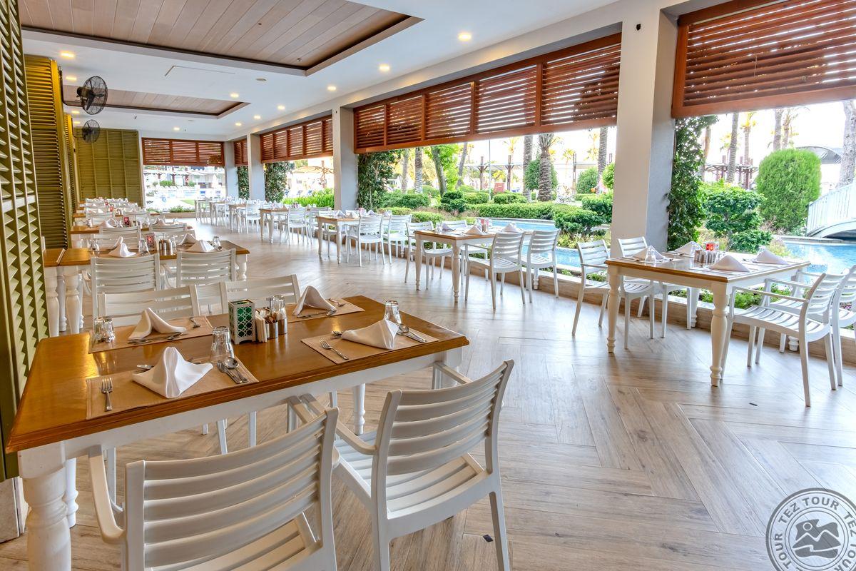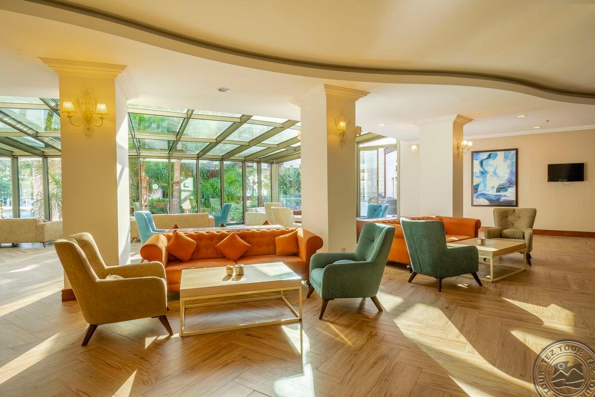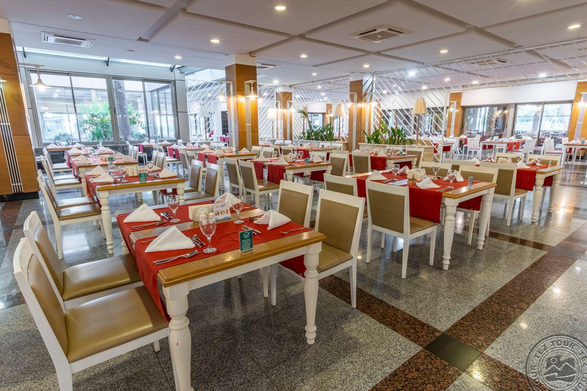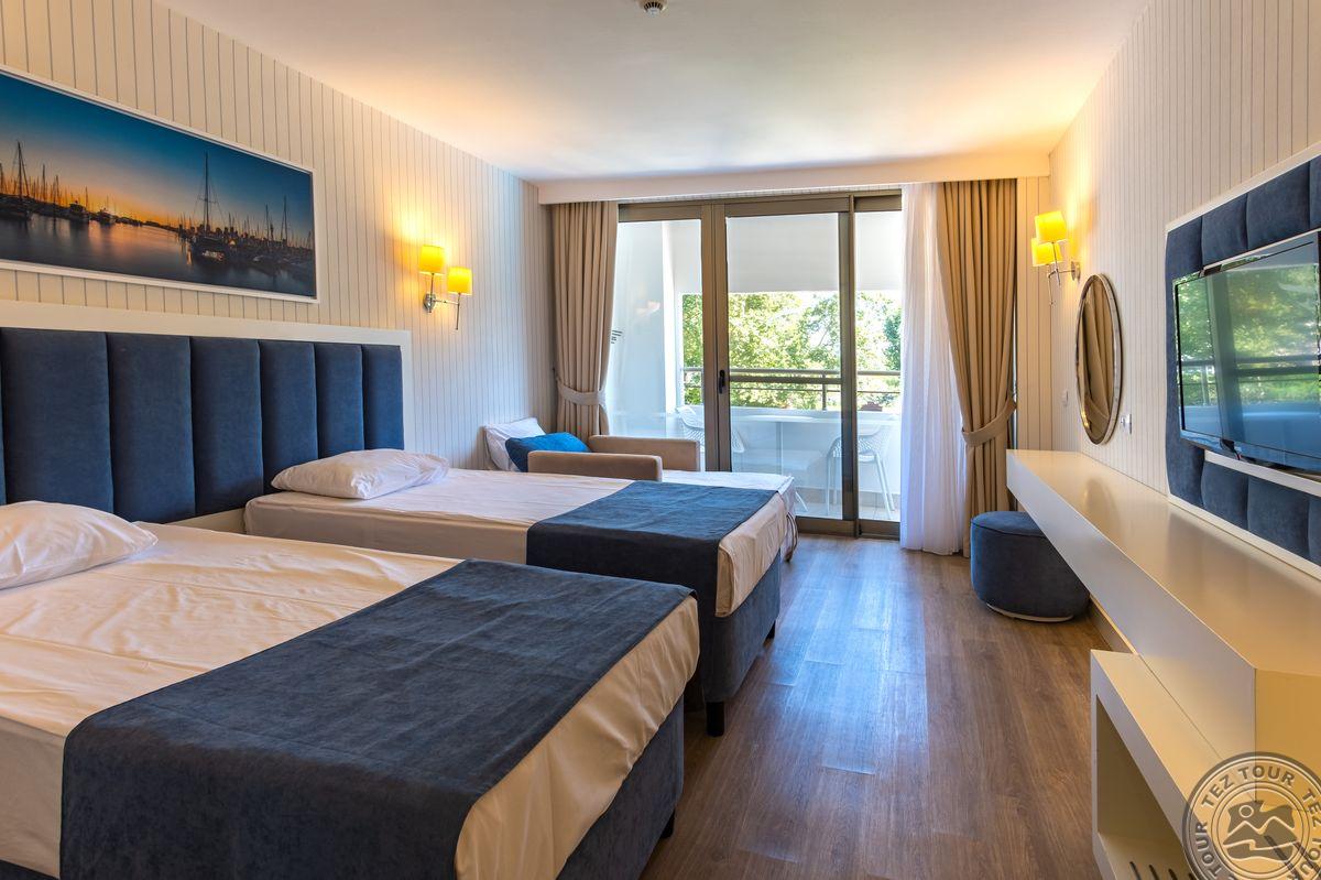 - Расположение: в 45 км от аэропорта г. Анталья, в 9 км от г. Кемер, в поселке Гёйнюк, на берегу моря. Отель: Построен в 1990 году, общая площадь 100 000 м2, последняя реновация в главном здании прошла зимой 2019/20 года. Отель состоит из основного 6-этажного здания и 3-этажного корпуса Garden Chalet. Всего 542 номера: 377 comfort standard room (из них 6 номера для людей с ограниченными возможностями, макс. 2+2 чел., 26–32 м2); 43 Eco Room (номера без определенного вида, могут быть на любом этаже, макс. 2+инфант