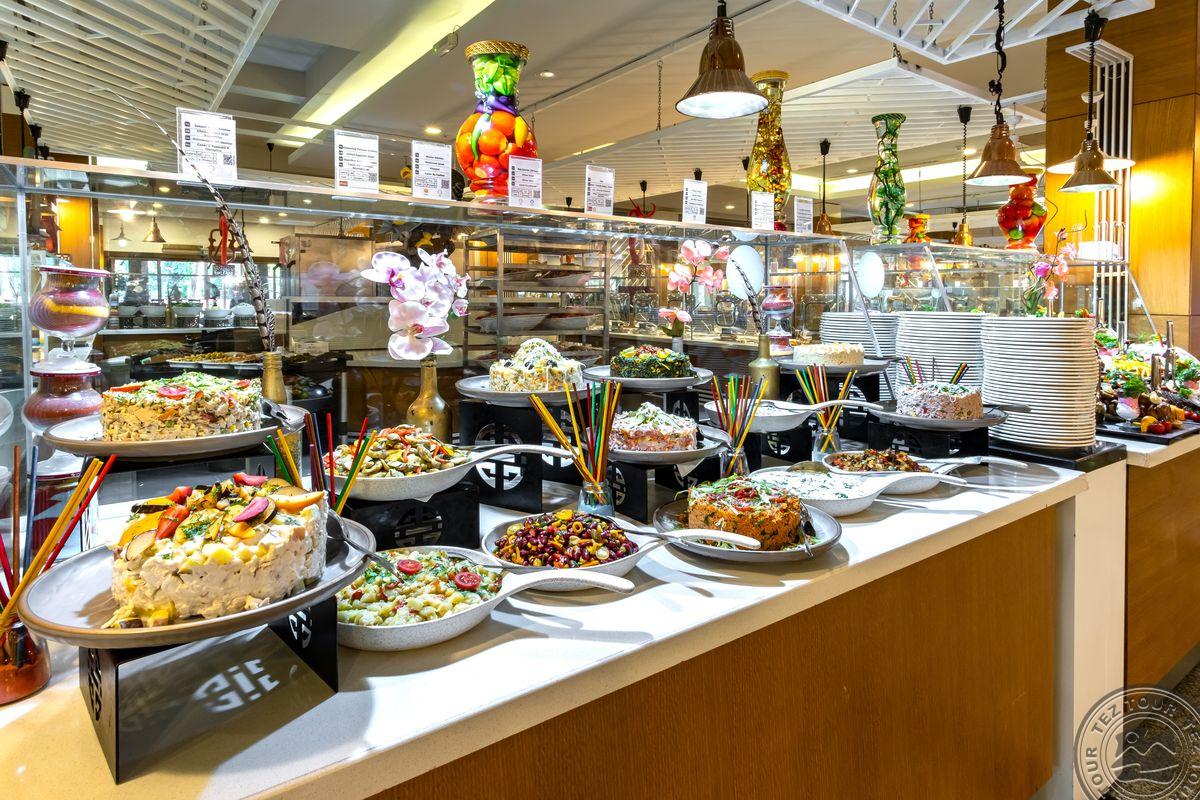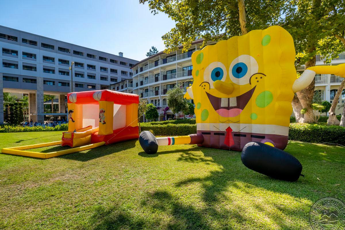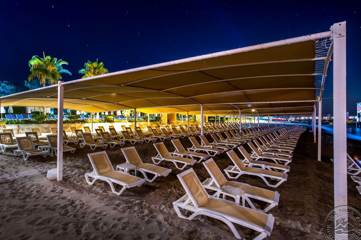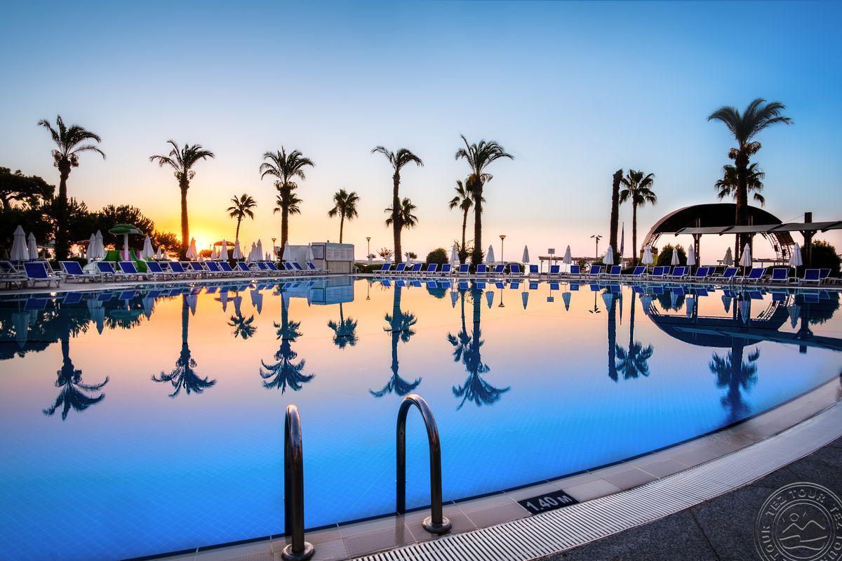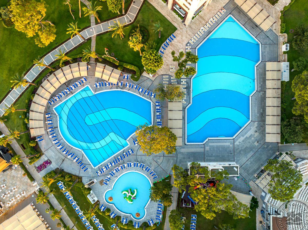 Территория:> рестораны: 1 (основной) бары: 5 крытые бассейны: 1 бассейны: 3 (открытые) спа-центр (платно) конференц-залы: 14 (на 30-800 чел.) у бассейна полотенца: бесплатно химчистка рестораны a la carte: 5 (турецкий, итальянский, рыбный, японский, мексиканский, по предварительной записи, вход – платно) кабинет врача (платно) водные горки: 5 прачечная Wi-Fi бесплатно (в конференц-залах и лобби) у бассейна зонтики, шезлонги, матрасы: бесплатно парикмахерская магазины