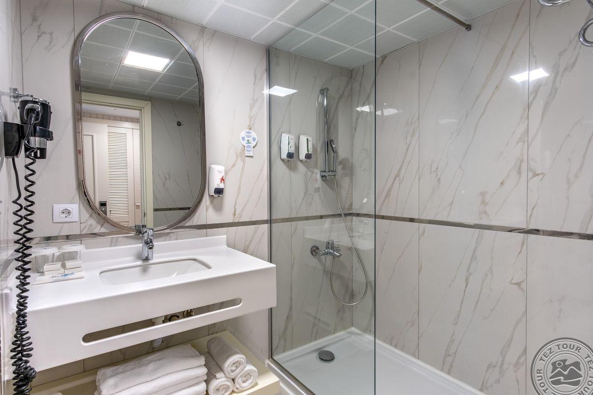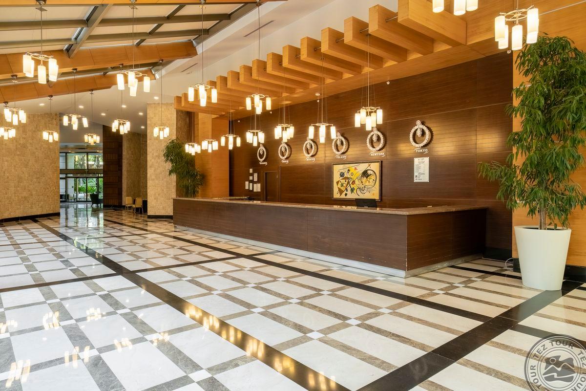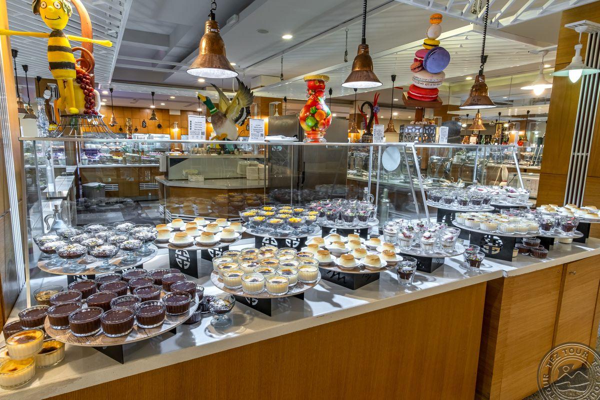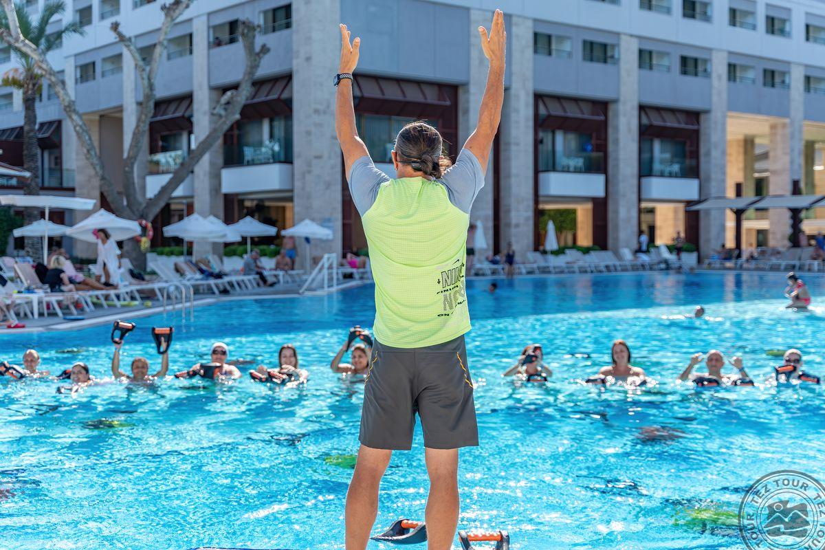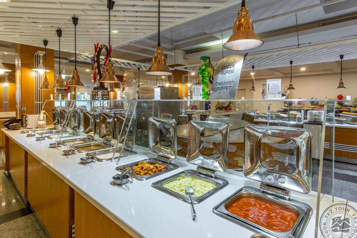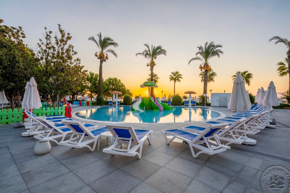 Территория:> рестораны: 1 (основной) бары: 5 крытые бассейны: 1 бассейны: 3 (открытые) спа-центр (платно) конференц-залы: 14 (на 30-800 чел.) у бассейна полотенца: бесплатно химчистка рестораны a la carte: 5 (турецкий, итальянский, рыбный, японский, мексиканский, по предварительной записи, вход – платно) кабинет врача (платно) водные горки: 5 прачечная Wi-Fi бесплатно (в конференц-залах и лобби) у бассейна зонтики, шезлонги, матрасы: бесплатно парикмахерская магазины