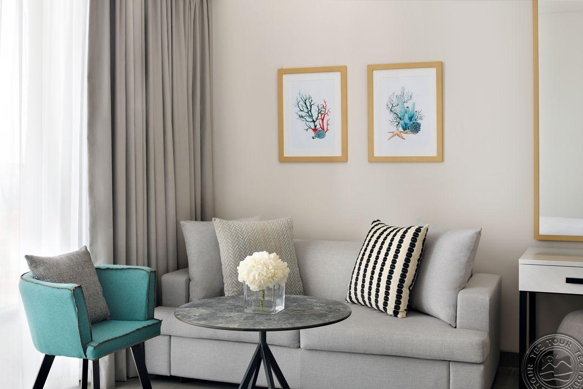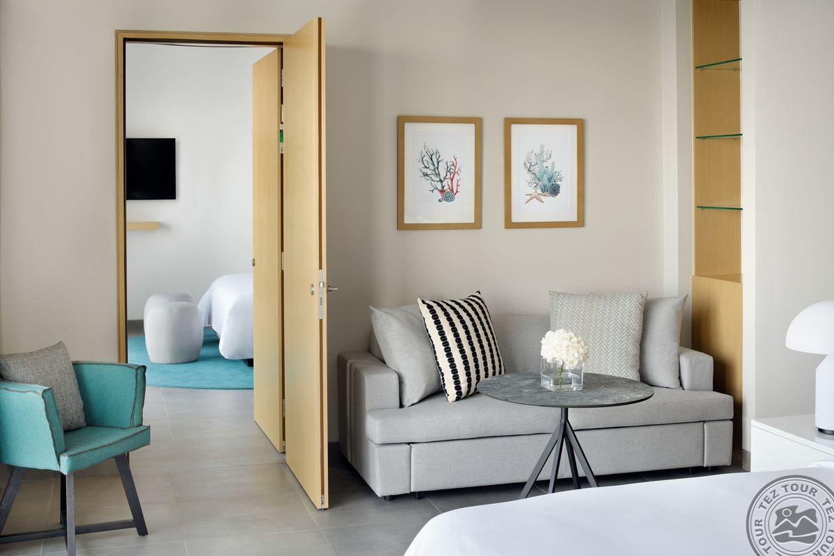Corner Suite Beach and Pool View (1-10 этаж, вид на пляж и бассейн, спальня и зона гостиной, макс. 2+2 или 3 чел., 42 м2);