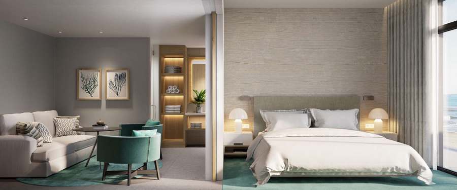 Beachfront Suites and 2 Junior Suites BeachfrontJunior suites Beachfront with Terrace• Площадь: 52 кв.м. • 14 полулюксов на берегу моря с собственной террасой площадью 27 кв.м.• Потрясающий вид на море• Просторная ванная комната с тропическим душем и ванной• Во всех люксах есть диван-кровать (142x185 см)• За дополнительную плату могут разместиться: 2 взрослых и 2 детей или максимум 3 взрослых на диване-кровати. КРОМЕ ТОГО, ОН МОЖЕТ БЫТЬ ПРОДАН КАК• В сочетании с пляжным люксом Al Marjan: Двухуровневые пляжные люксы с 2 спальнями, частным бассейном и террасой• Шале на берегу моря Аль-Марьян (весь блок): Al Marjan Beachfront Suites and 2 Junior Suites Beachfront