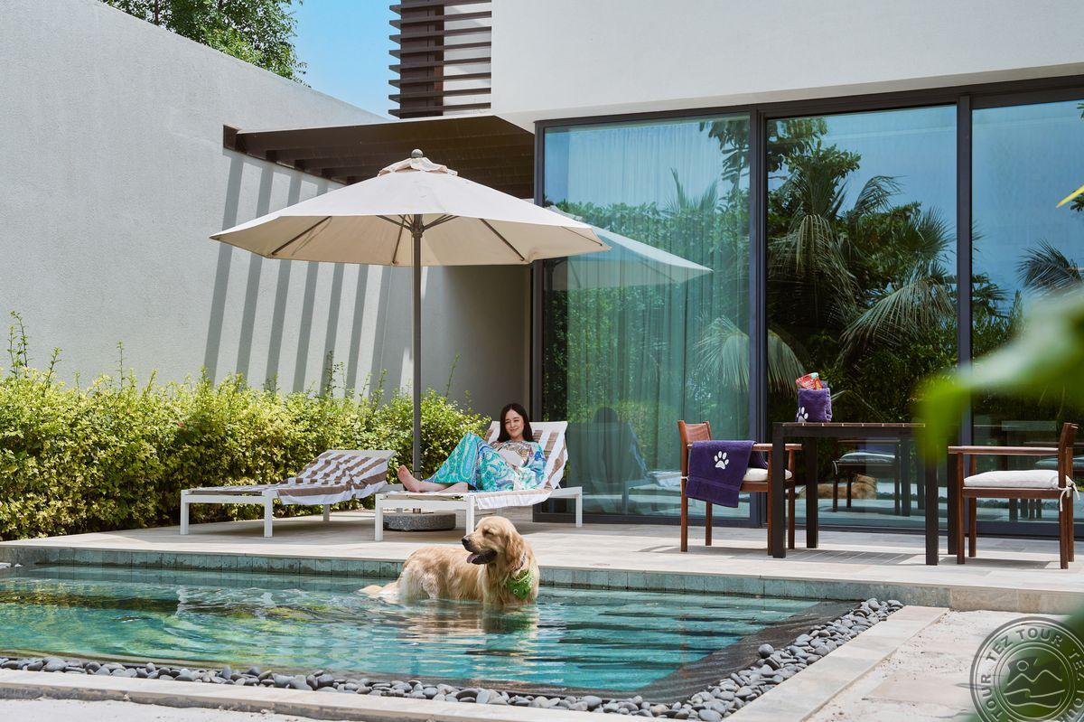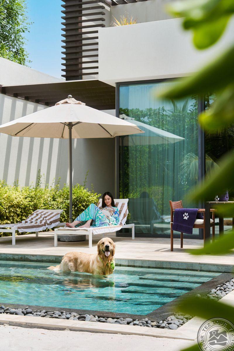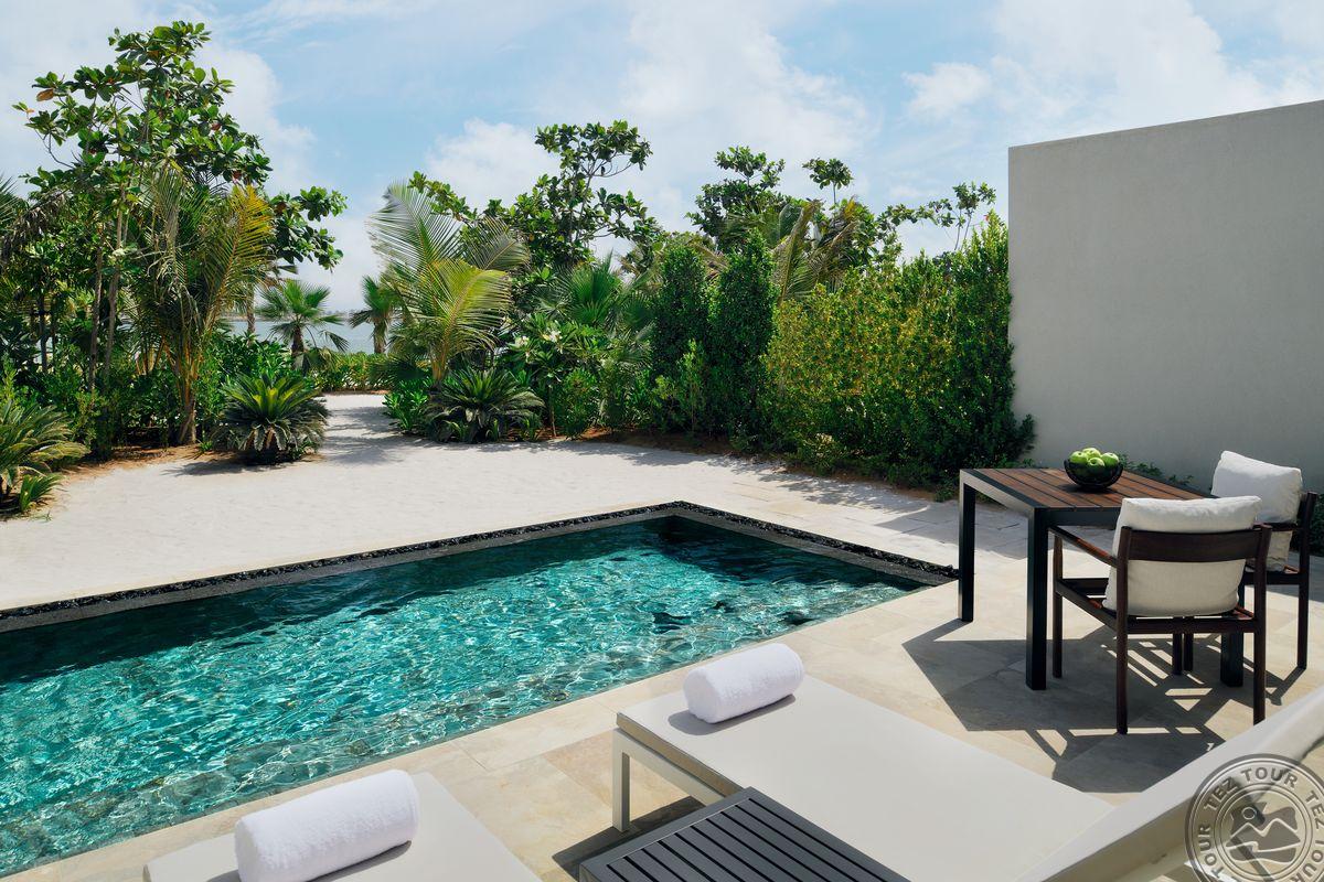 14 Al Marjan Beachfront Suite With Private Pool (в шале рядом с пляжем, вид на море, гостиная и спальня, индивидуальный бассейн, макс. 3+1 чел., 83 м2).