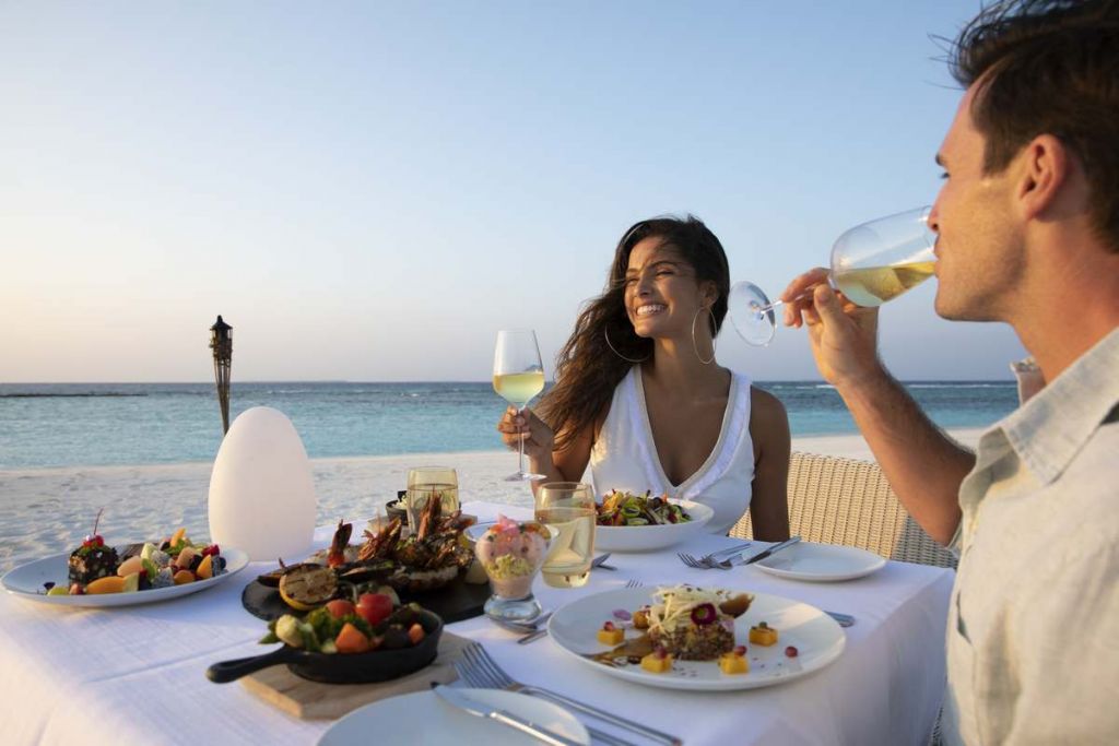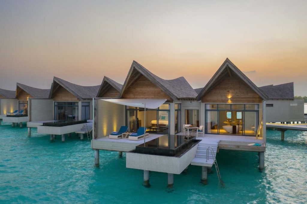 На курорте: 105 просторных и стильных вилл с персональным бассейном, созданные для максимально-комфортного отдыха гостей, расположились на пляже (33 виллы) и в лагуне над водой (72 виллы).