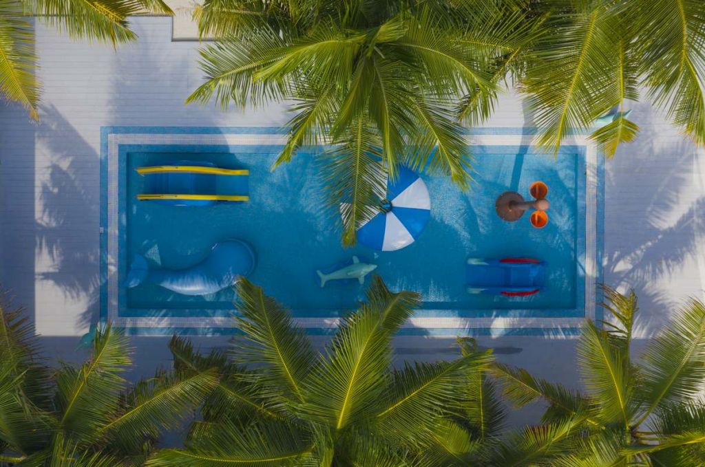 - (03) 03 Bedrooms Beach Pool Residence (Площадь 230 кв.м.) Трёх спальные пляжные резиденции с бассейном – идеальный вариант для размещения больших семей и компаний. Существенное расстояние между виллами и обилие зелени гарантирует приватность гостям. Каждая резиденция состоит из просторной гостиной с обеденной зоной, комнаты для спа процедур, двух главных спален с кроватью king и одной спальни с двумя кроватями twin. Снаружи резиденции расположена открытая терраса для отдыха с бассейном.