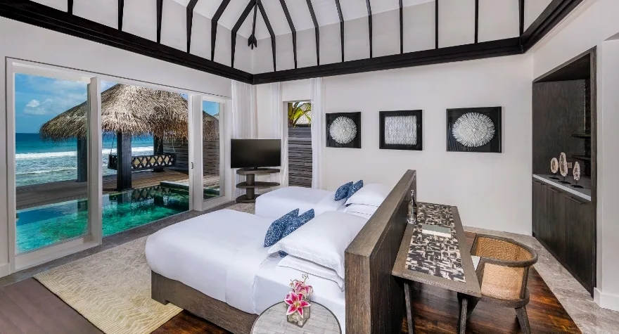 Описание номеров Naladhu Maldives 5*:Номер уютно обставлен и оснащён необходимым, чтобы отдохнуть после долгого и насыщенного дня. Имеются DVD-плеер, будильник, душ, телевизор, мини-бар, халат и тапочки. Оснащение зависит от выбранной категории номера.