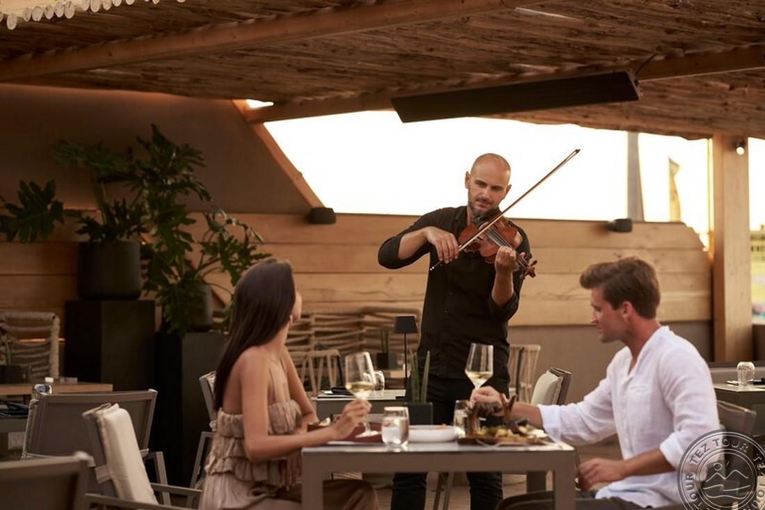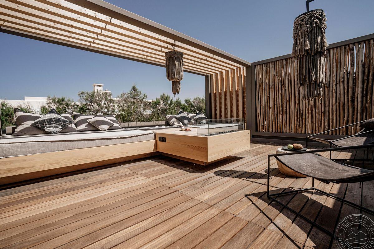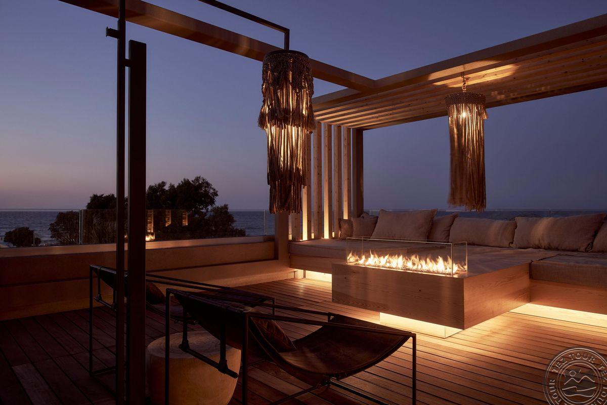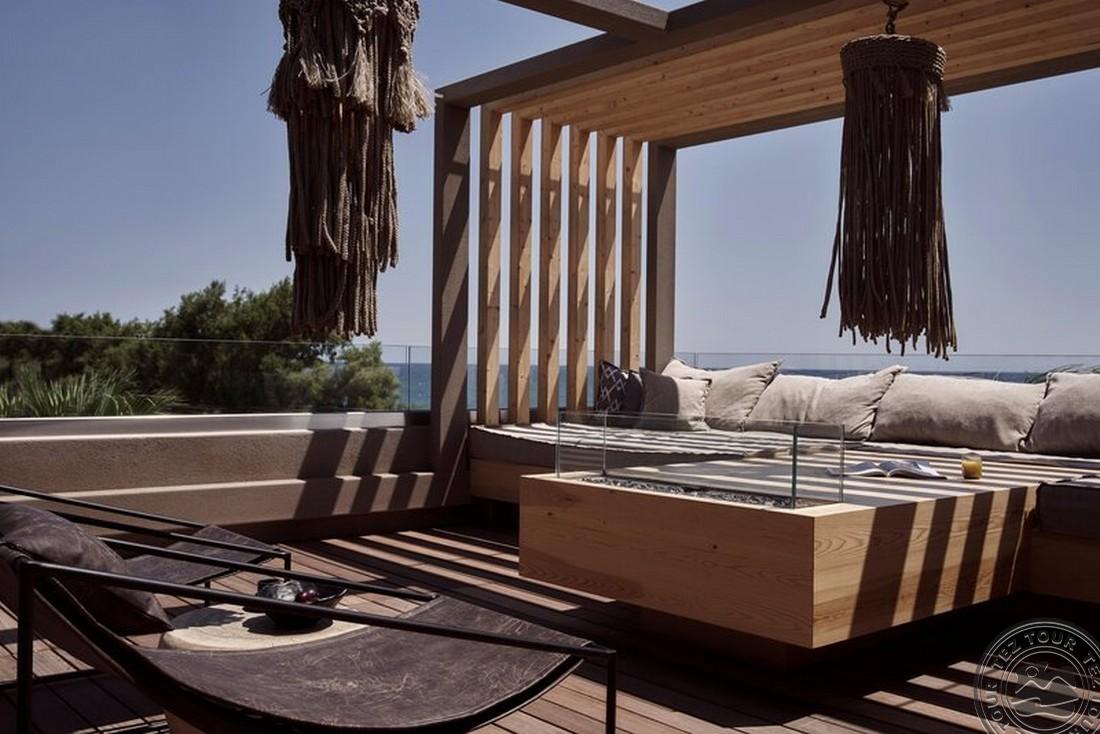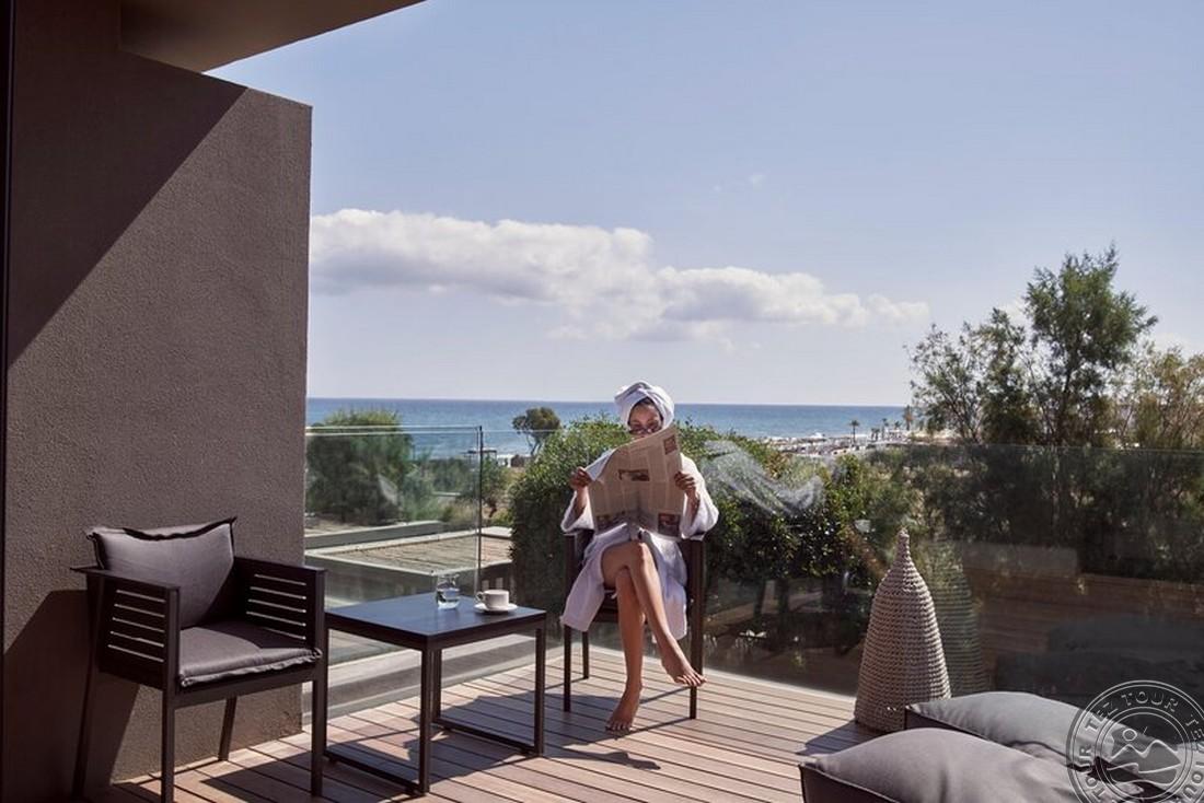 Suite Sea View (вид на море, гостиная и спальня, осн. кровать – двуспальная, доп. – кровать и софа, балкон/ терраса с шезлонгами и камином, макс. 4 чел., общая площадь 70 м2 (жилая площадь 35 м2, балкон и терраса 45 м2));
