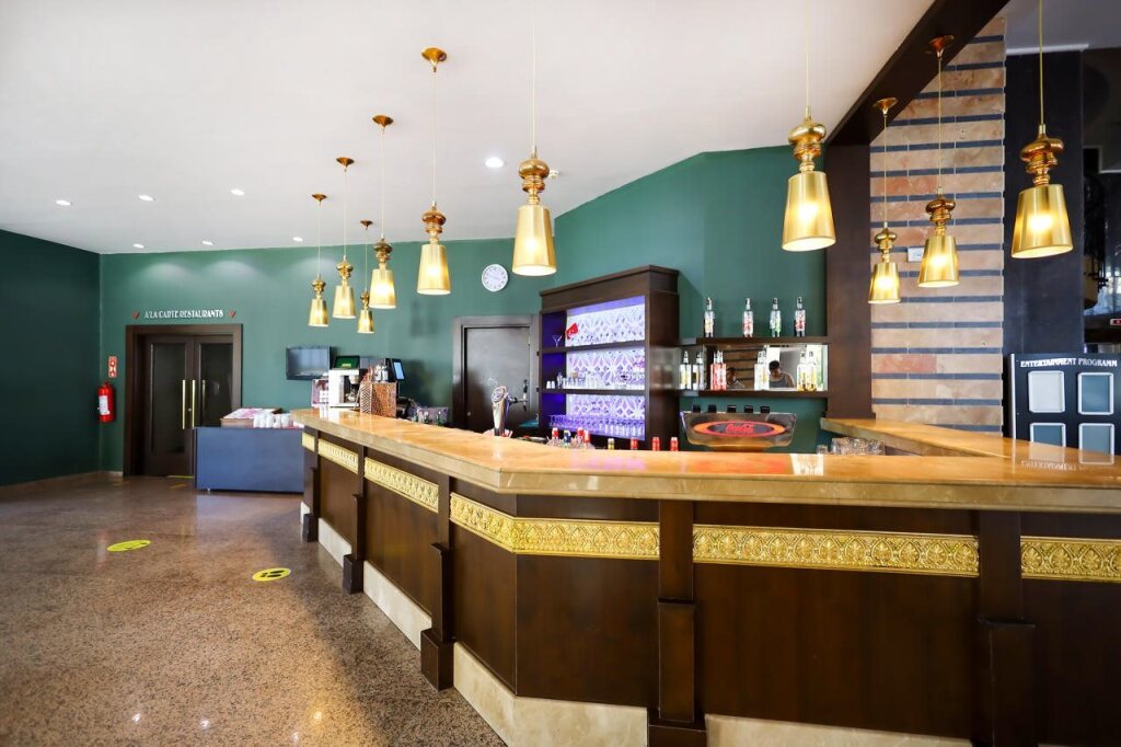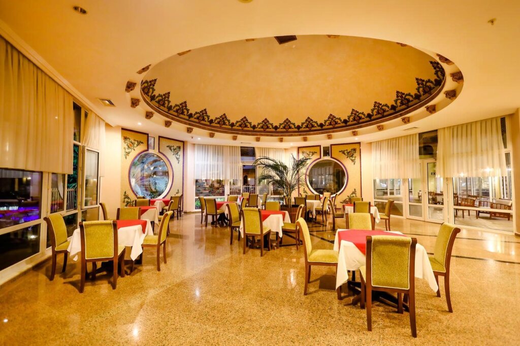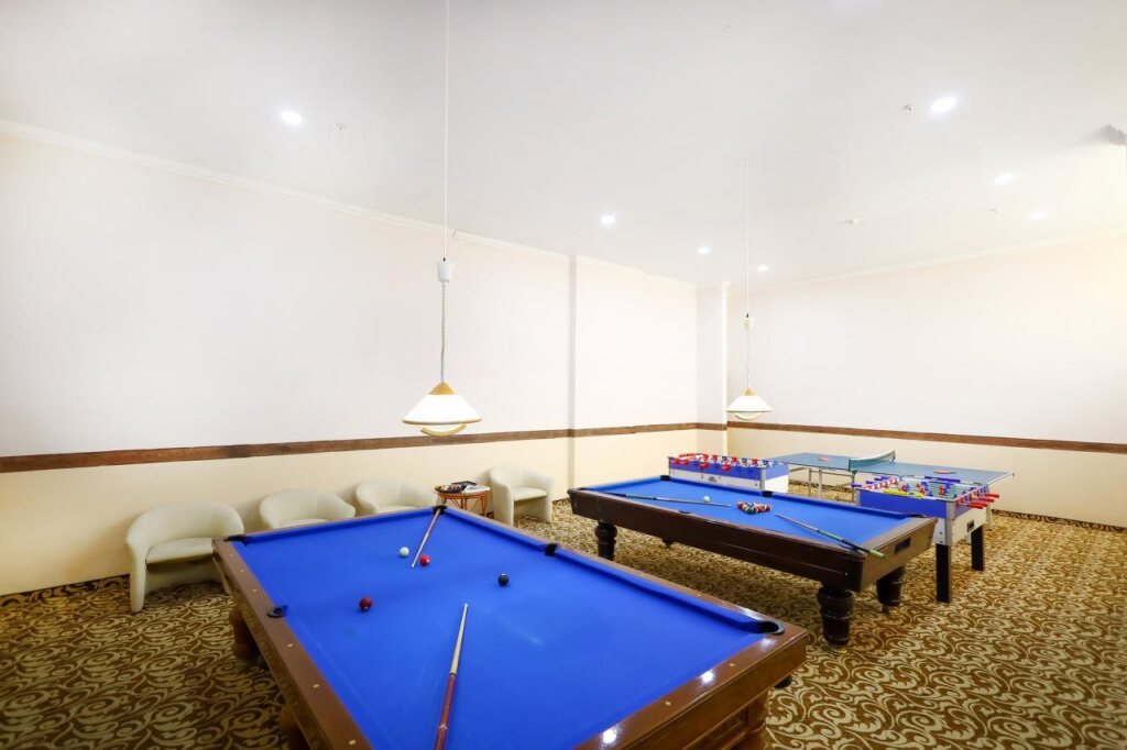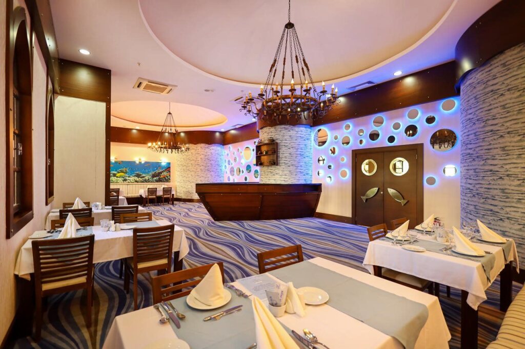 В отеле:Скоротать вечер или приятно провести время перед сном в уютной атмосфере можно в баре. Для гостей работает ресторан. Кафе отеля — удобное место для перекуса. Хотите оставаться на связи? В отеле есть бесплатный Wi-Fi.; Для путешественников на машине организована парковка. Гостям также доступны следующие услуги: массажный кабинет, сауна, паровая баня, спа-центр и врач. Специально к услугам гостей, не упускающих возможность заняться спортом, фитнес-центр, настольный теннис и дайвинг. Готовьтесь к весёлому и насыщенному отдыху! На территории есть караоке, библиотека и пинг-понг.; Для тех, кто не представляет отдых без водных удовольствий, есть бассейн, аквапарк, крытый бассейн и открытый бассейн. Для участников деловых встреч предусмотрены конференц-зал и оборудование для встреч и презентаций. Дети будут рады! Работает детская игровая комната. Если планируете экскурсии, обратите внимание на экскурсионное бюро отеля.; Для простоты передвижения возможна организация трансфера. Доступная среда: работает лифт. А ещё в распоряжении гостей прачечная, химчистка, гладильные услуги, пресса, прокат автомобилей и сейф. Персонал отеля говорит на английском, немецком и русском.