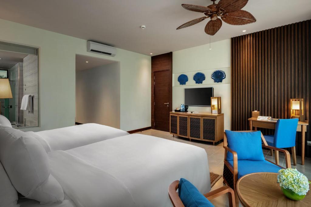 Описание номеров Novotel Phu Quoc Resort 5*:В номере гостей ждут DVD-плеер, будильник, телевизор, мини-бар, халат и тапочки. Перечисленные услуги есть не во всех номерах.