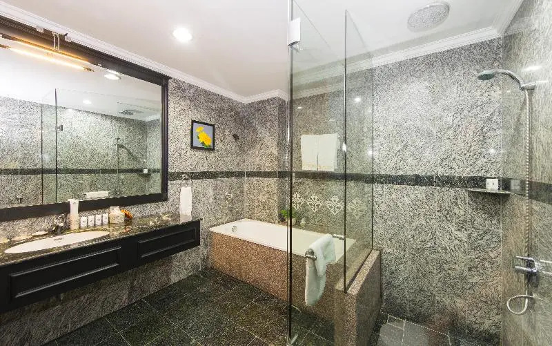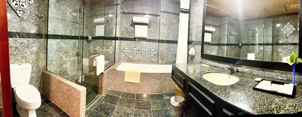 В отеле:Скоротать вечер или приятно провести время перед сном в уютной атмосфере можно в баре. Для гостей работает ресторан. Попробуйте кофе в кафе — вдруг именно он станет лучшим в городе? Хотите оставаться на связи? В отеле есть бесплатный Wi-Fi.; Специально для автопутешественников организована парковка. Среди услуг для красоты и здоровья — массажный кабинет, сауна, паровая баня и спа-центр. Специально к услугам гостей, не упускающих возможность заняться спортом, фитнес-центр и тренажёрный зал. Скучно не будет, ведь в отеле к услугам отдыхающих казино, караоке, библиотека и площадка для барбекю.; Для тех, кто не представляет отдых без водных удовольствий, есть бассейн и открытый бассейн. Для бизнес-мероприятий предусмотрен конференц-зал. Дети будут рады! Работает детская игровая комната. Если планируете экскурсии, обратите внимание на экскурсионное бюро отеля.; Сотрудники отеля по запросу организуют гостям трансфер. Доступная среда: работает лифт. Гостям доступны и другие услуги. Например, прачечная, химчистка, банкомат, индивидуальная регистрация заезда и отъезда, гладильные услуги, пресса, прокат автомобилей, сейф и консьерж. Сотрудники отеля поддержат беседу на английском.