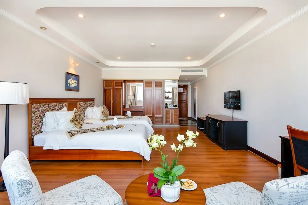 Описание номеров One Opera Danang Hotel 5*:Номер уютно обставлен и оснащён необходимым, чтобы отдохнуть после долгого и насыщенного дня. Имеются DVD-плеер, душ, телевизор, мини-бар, халат и тапочки. Перечисленные услуги есть не во всех номерах.