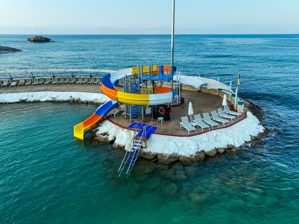 - Водные горки4 (работают в определенное время, в зависимости от погодных условий по решению администрации отеля)Внимание! Летом 2024 на волнорезе установили горку с выходом в море