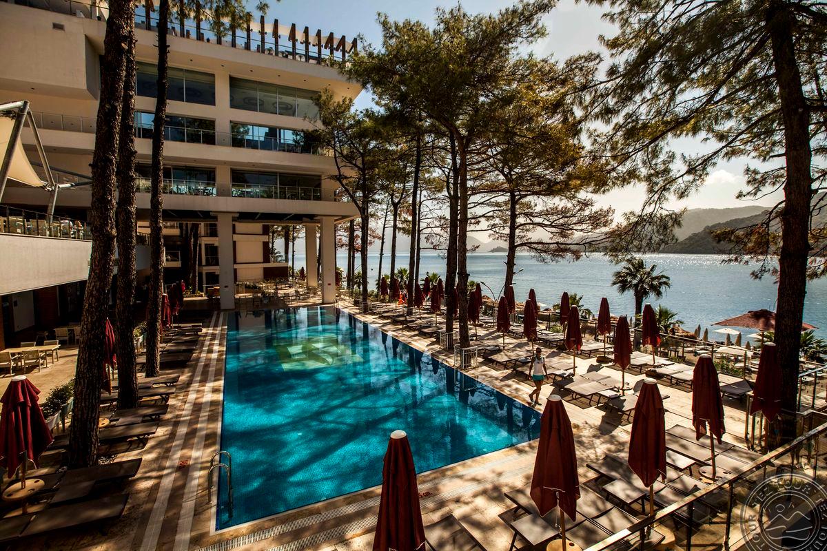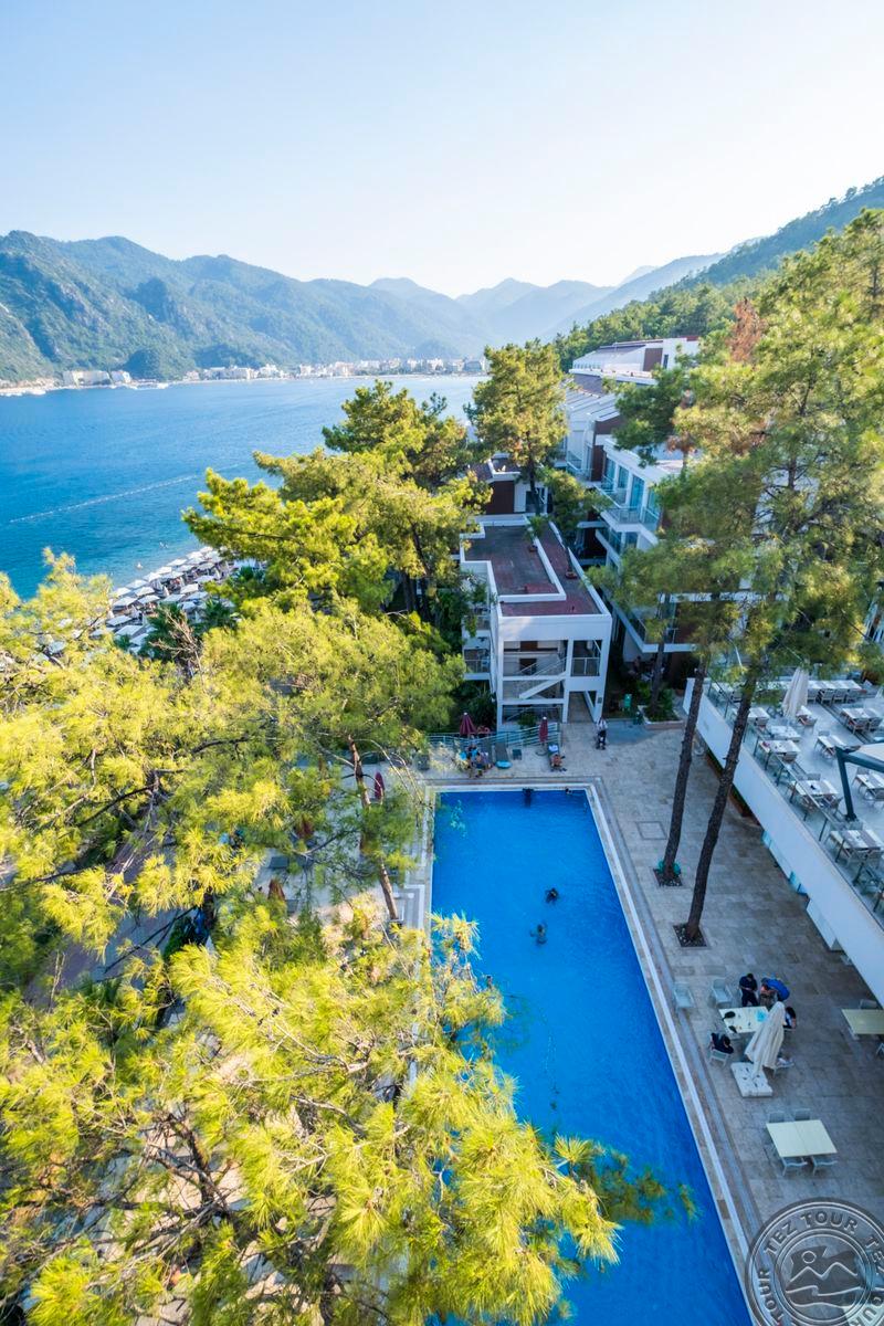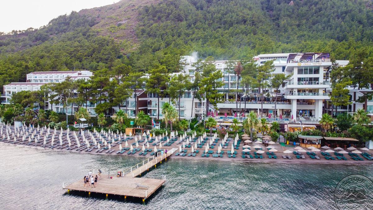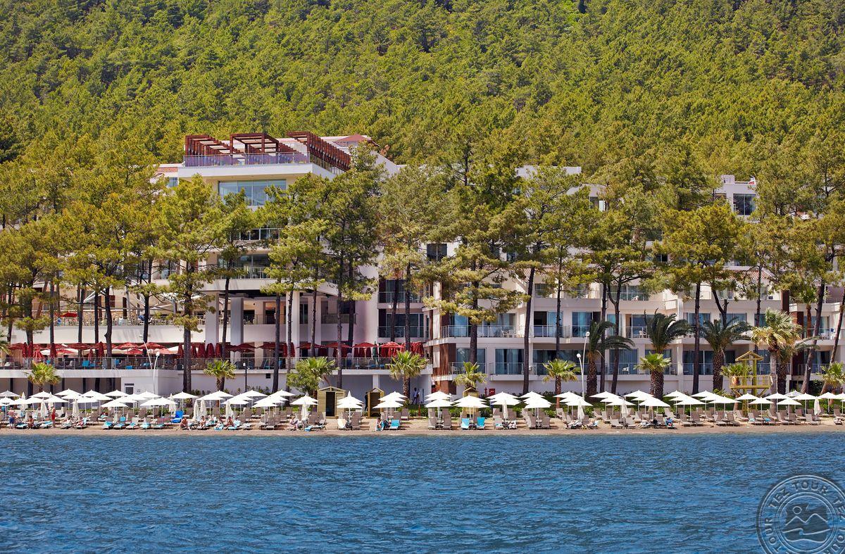 в 90 км от аэропорта г. Даламан, в 150 км от аэропорта Бодрума, в 6 км от г. Мармарис, в 2 км от центра поселка Ичмелер, на берегу моря.