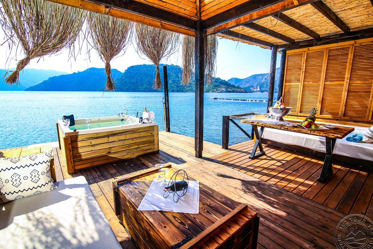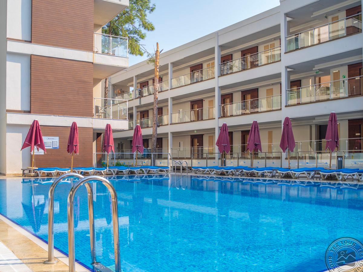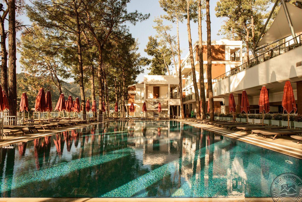 в 90 км от аэропорта г. Даламан, в 150 км от аэропорта Бодрума, в 6 км от г. Мармарис, в 2 км от центра поселка Ичмелер, на берегу моря.