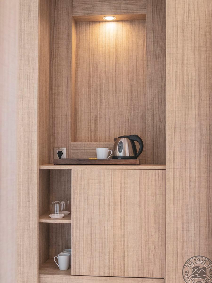 Номер:> сейф: в номере, бесплатно пол: ламинат банные принадлежности телевизор: есть выбор подушек тапочки душ фен: есть кондиционер: центральный мини-бар бесплатно (вода, прохладительные напитки, пиво при заезде; вода – пополняется ежедневно) room service: круглосуточно, платно балкон или терраса (кроме Standard Promo) телефон набор для приготовления чая/кофе Интернет: Wi-Fi, бесплатно