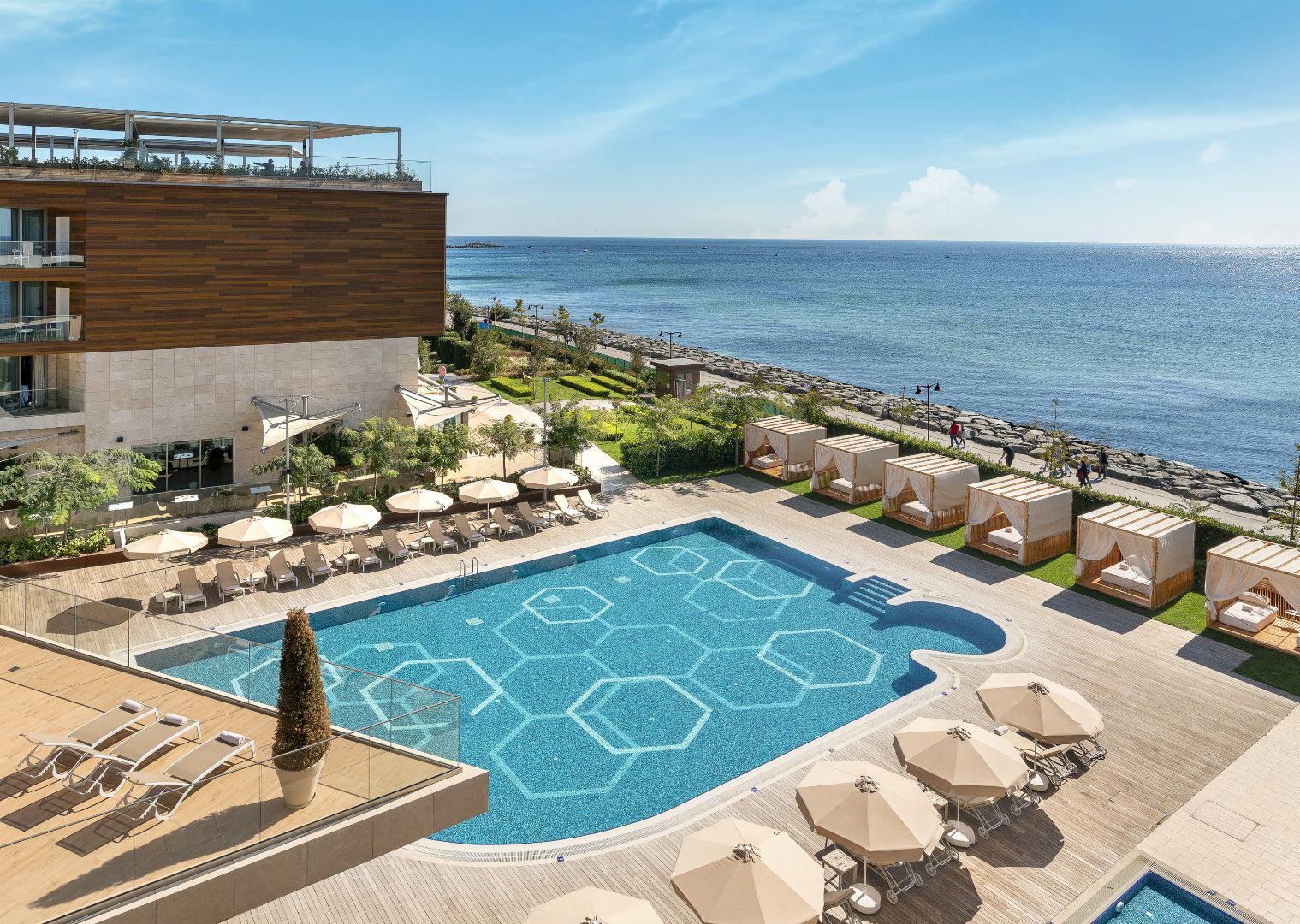 Отель предлагает удобное расположение как для местных, так и для иностранных гостей, а также для тех, кто не предпочитает покидать город по выходным или хочет сделать небольшой перерыв в городе. Отель находится в одном комплексе с крупнейшим в мире тематическим аквариумом Istanbul Akvaryum и элитным торговым центром Aqua Florya, который предлагает легкий доступ ко множеству ресторанов, фуд-кортов и зон отдыха.