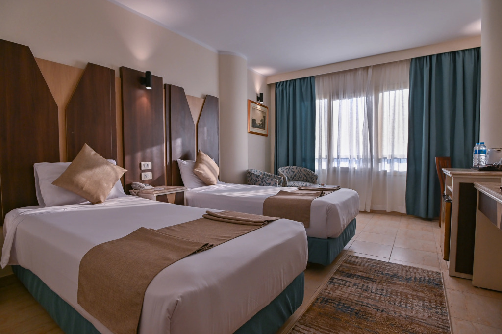 Отель Swiss Inn Nile предлагает размещение в комфортабельных номерах. Стандартная комплектацияя включает высокоскоростной доступ в Интернет, спутниковое телевидение, кондиционер, мини-бар, телефон, кофеварку, фен и набор туалетных принадлежностей. По запросу предоставляются детские кроватки.