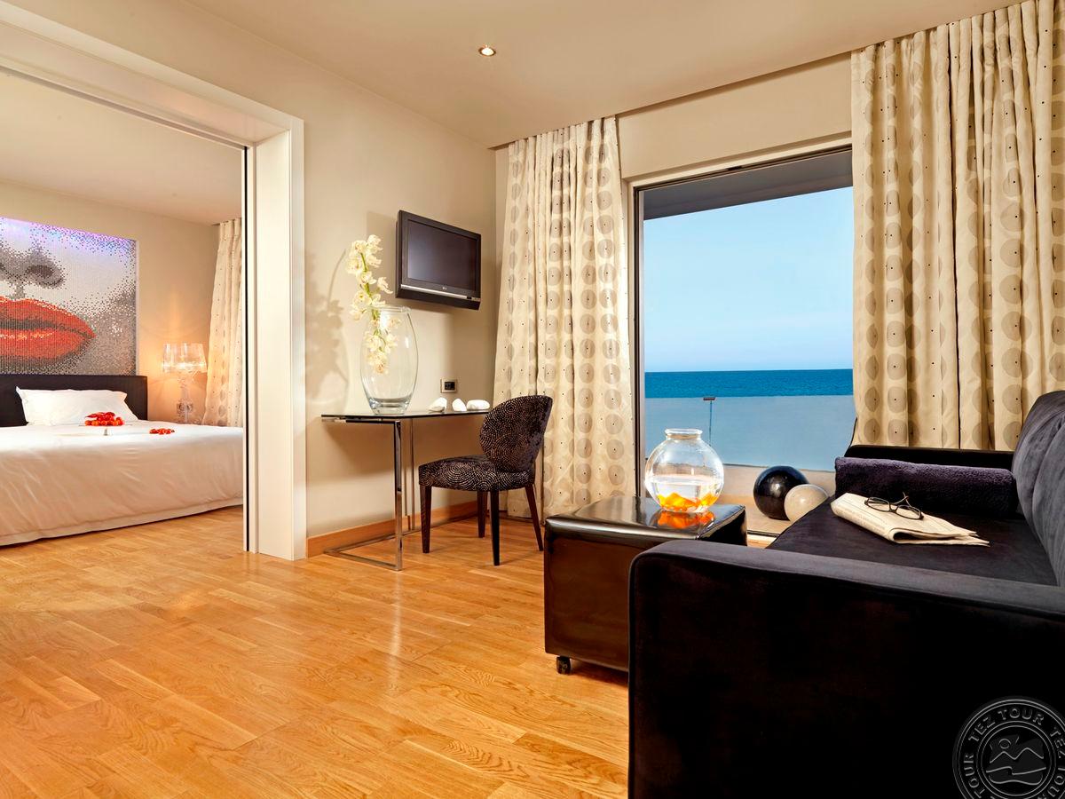 Exclusive Thalassa 1 Bedroom Suite Front SV (расположен в главном здании, вид на море, спальня и гостиная, осн. кровать - двуспальная, доп. - диван - кровать, привилегии Exclusive Collection, макс. 3+1 чел., 50-60 м2)