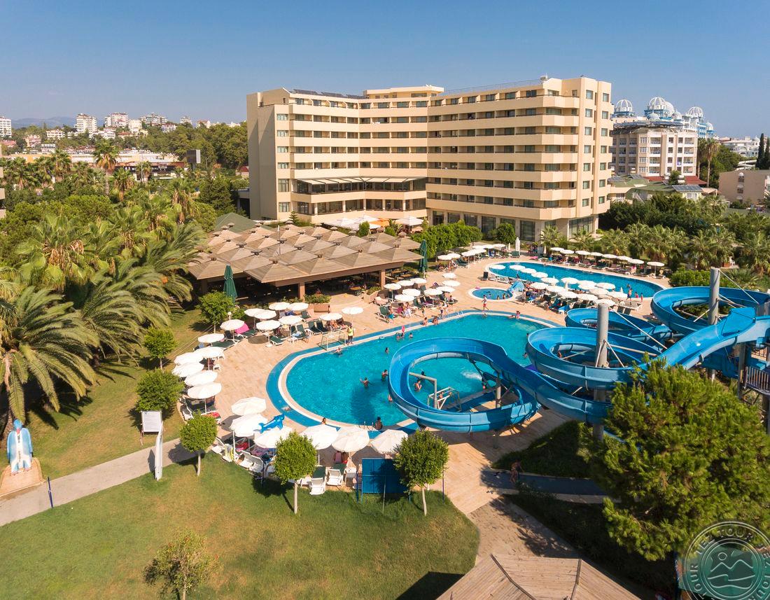 Территория:> рестораны: 1 (основной, есть диетическое и вегетарианское питание) бары: 5 крытые бассейны: 1 бассейны: 2 (открытые) спа-центр конференц-залы: 3 (на 50 - 250 чел) у бассейна полотенца: бесплатно рестораны a la carte: 2 (рыбный и турецкий, по предварительной записи, за неделю проживания посещение ресторана 1 раз – бесплатно) кабинет врача водные горки: 3 Wi-Fi бесплатно (в лобби и баре) у бассейна зонтики, шезлонги, матрасы: бесплатно парикмахерская магазины