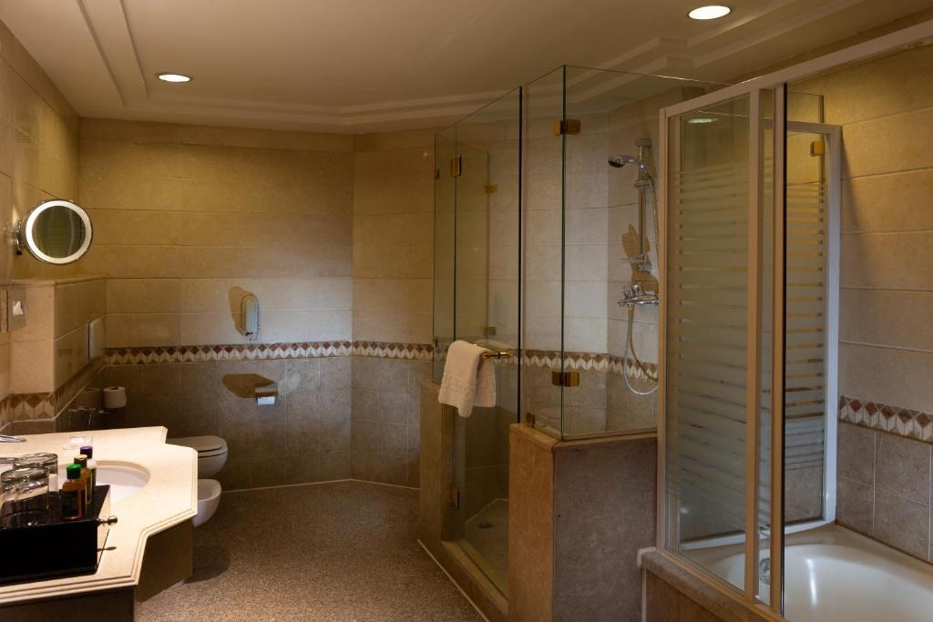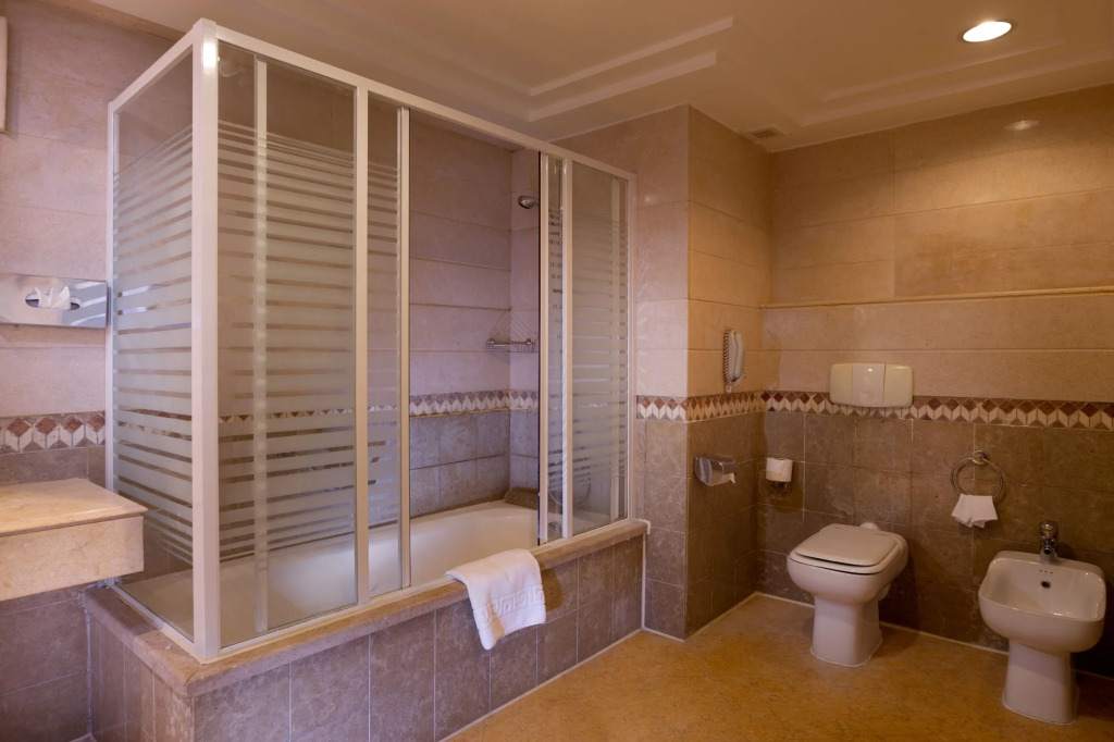 Номер уютно обставлен и оснащён необходимым, чтобы отдохнуть после долгого и насыщенного дня. Имеются душ, телевизор, мини-бар, халат и тапочки. Оснащение зависит от выбранной категории номера.