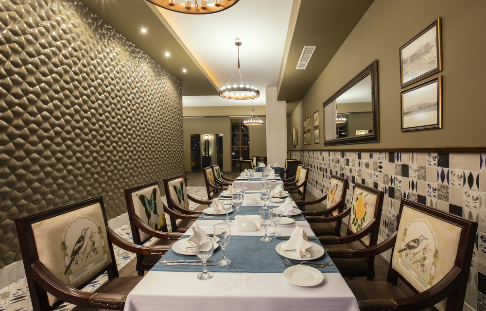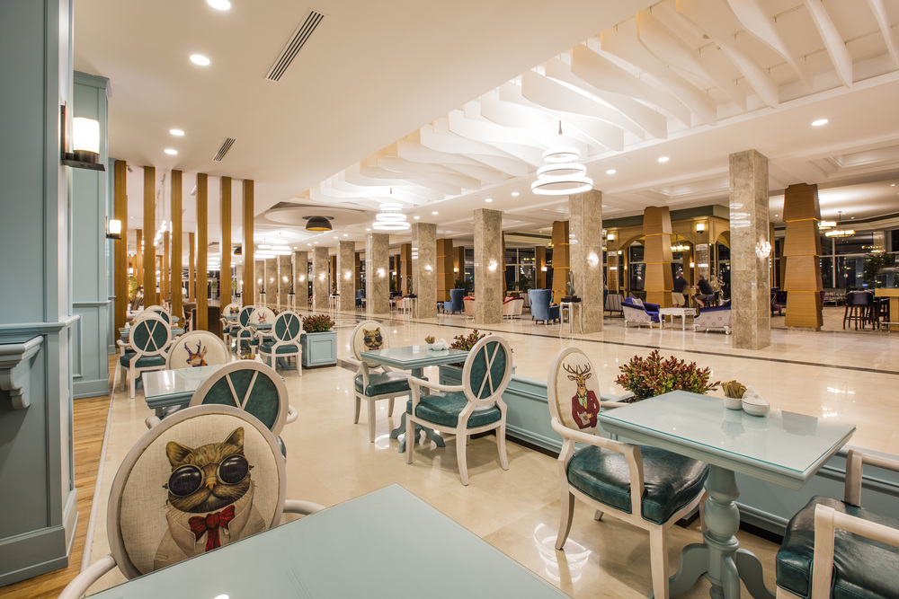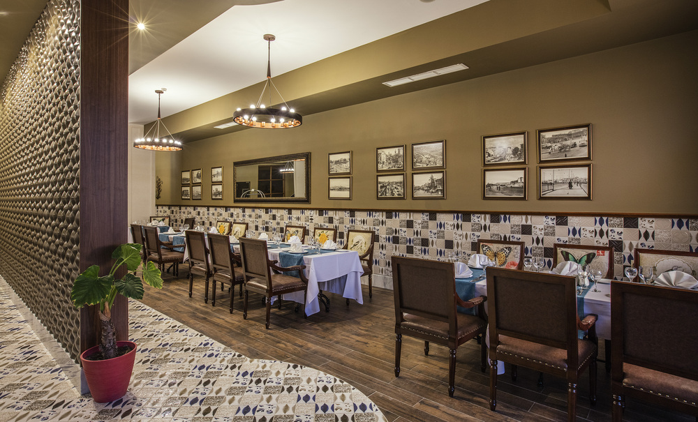 - РестораныAegean - шведский стол (в главном здании)Serape - a la carte, мексиканская кухня (в главном здании)Keyf - a la carte, турецкая кухня (в главном здании)Vera - a la carte, итальянская кухня (в главном здании)Laterna - a la carte, морепродукты (в главном здании)При проживании от 7 ночей, 1 посещение одного ресторана a la carte - бесплатно, по предварительной записи