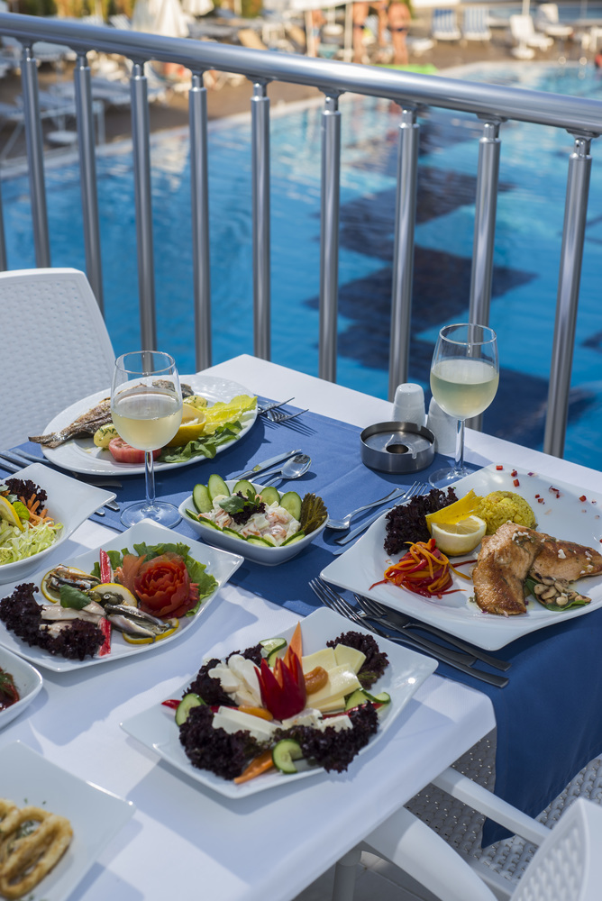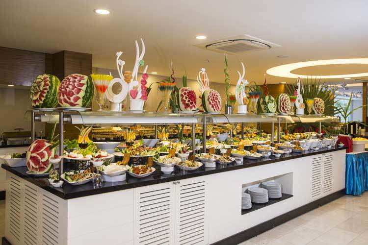 - Система питанияЗавтрак (с 07:00 до 10:00) шведский стол, основной ресторан Поздний завтрак (с 10:00 до 10:30) мини-шведский стол, основной ресторан Обед (с 12:30 до 14:30) шведский стол, основной ресторан Ужин (с 19:00 до 21:00) шведский стол, основной ресторан Ночной суп (с 23:30 до 23:30) Лепешки (с 12:30 до 15:30)Закуски сезонные (с 12:30 до 15:30)Кондитерская (с 16:00 до 17:00)Мороженое (с 16:00 до 17:00) Тематический рыбный ресторан a la carte 1 посещение за время отдыха бесплатно. Алкогольные и безалкогольные напитки местного производства входят в стоимость с 10:00 до 00:00.Платно: импортные напитки, турецкий кофе, свежевыжатые соки, мороженое, напитки после 00:00