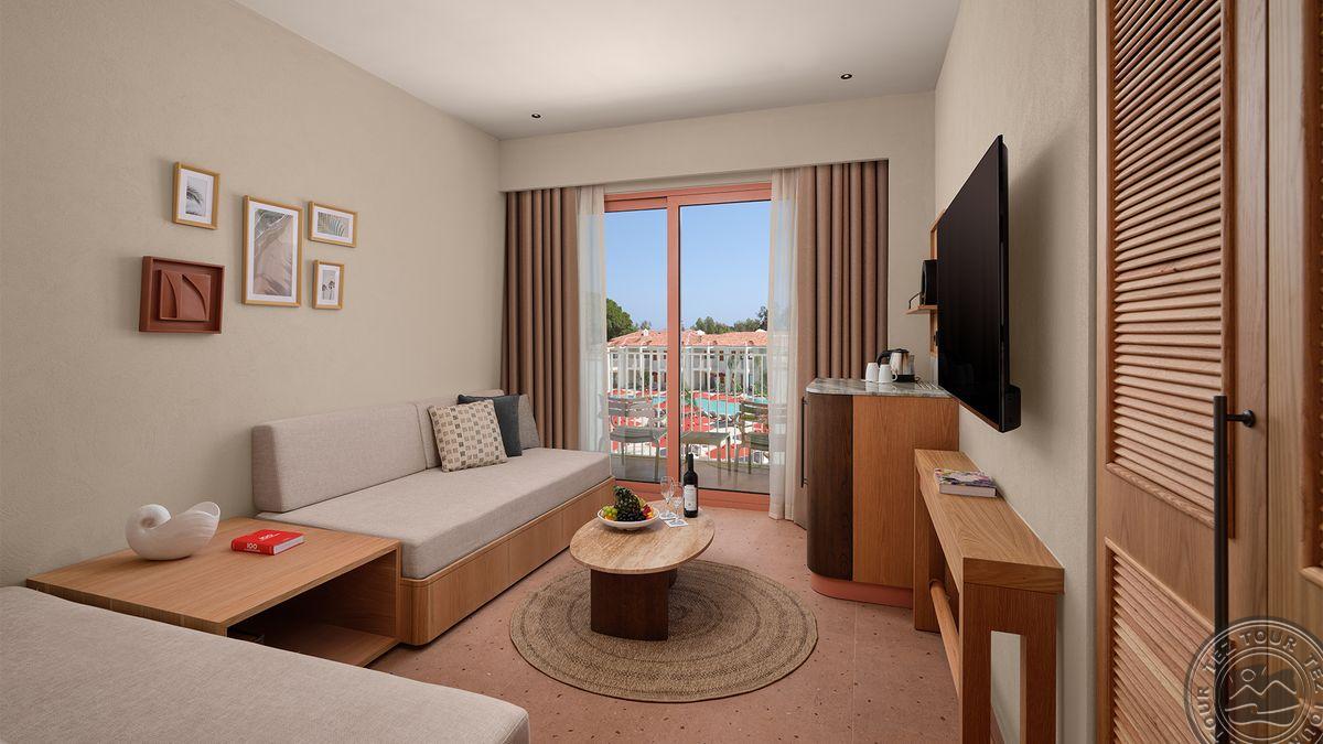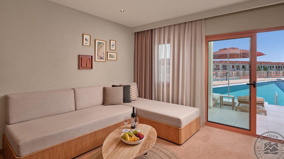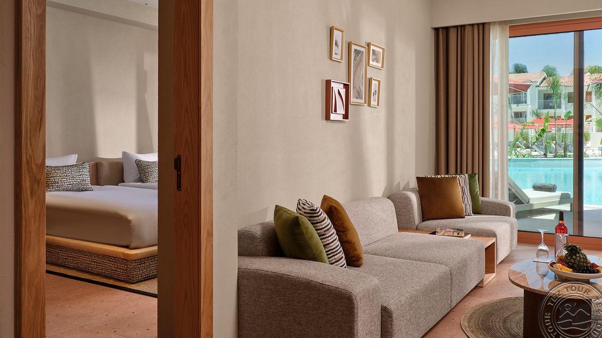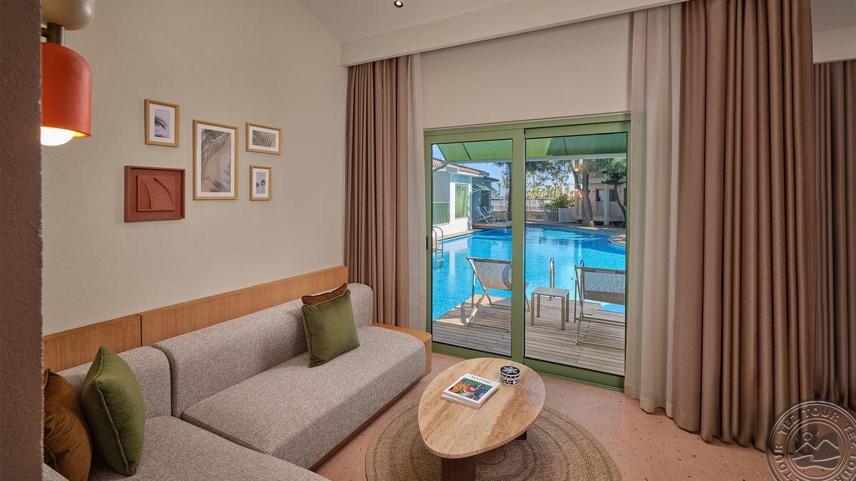 9 трехкомнатных Lagoon Premium Suite Direct Pool Access (с выходом к бассейну, гостиная, 2 спальни с дверьми, 2 ванные комнаты, макс. 4+1 чел., 80 м2);