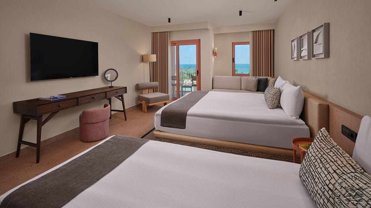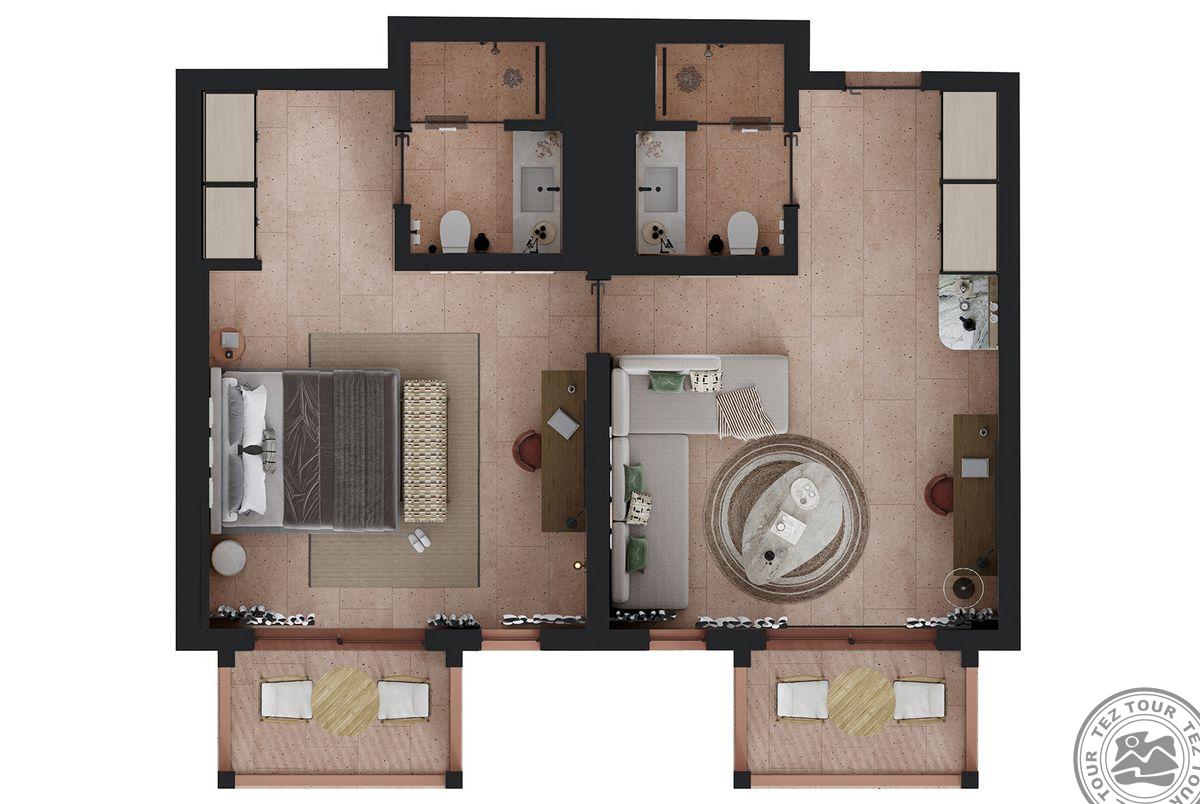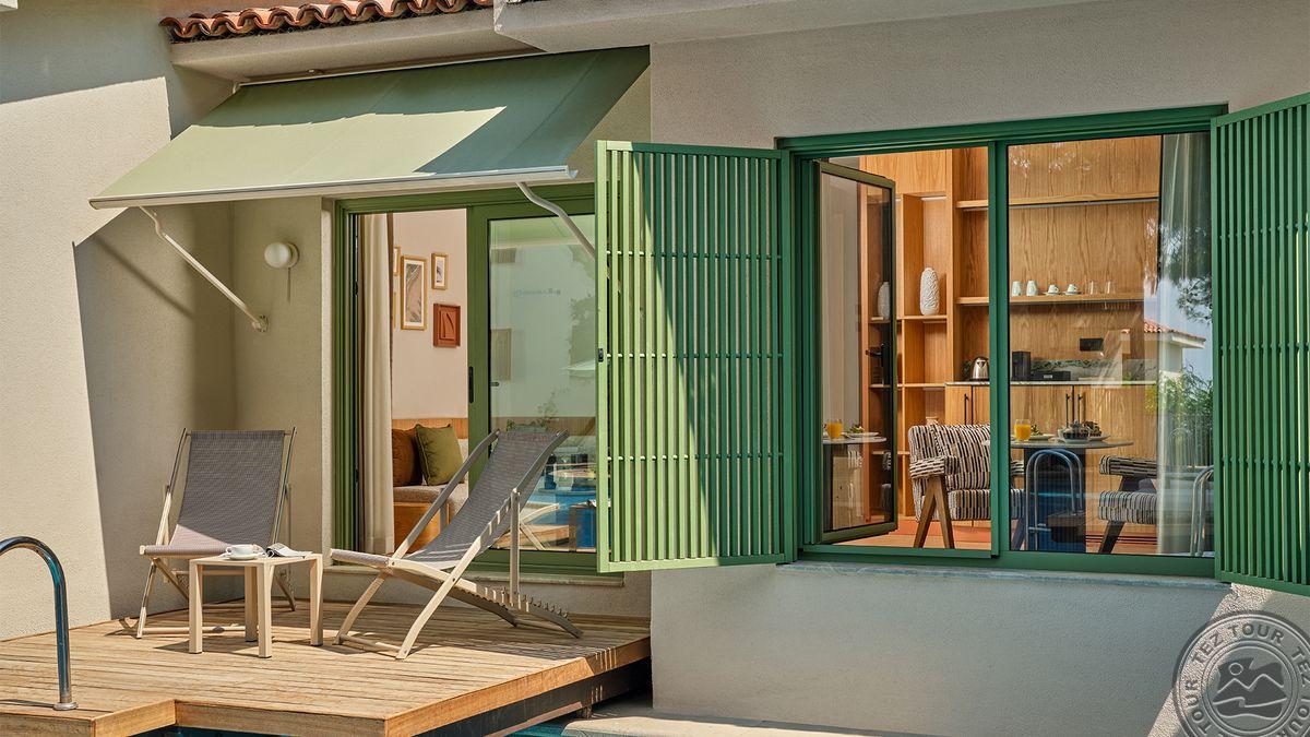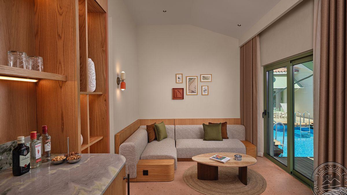 9 трехкомнатных Lagoon Premium Suite Direct Pool Access (с выходом к бассейну, гостиная, 2 спальни с дверьми, 2 ванные комнаты, макс. 4+1 чел., 80 м2);