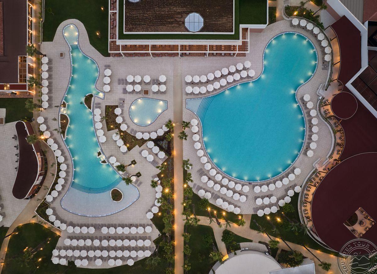 Территория:> рестораны: 1 (основной) бары: 7 крытые бассейны: 1 (закрыт 01.05-30.10) бистро есть бассейны: 6 (открытые) спа-центр у бассейна полотенца: бесплатно у бассейна зонтики, шезлонги: бесплатно химчистка (платно) рестораны a la carte: 4 врач по вызову (платно) Wi-Fi в общественных местах, бесплатно аквапарк (5 горок) прачечная платно парикмахерская (платно) магазины