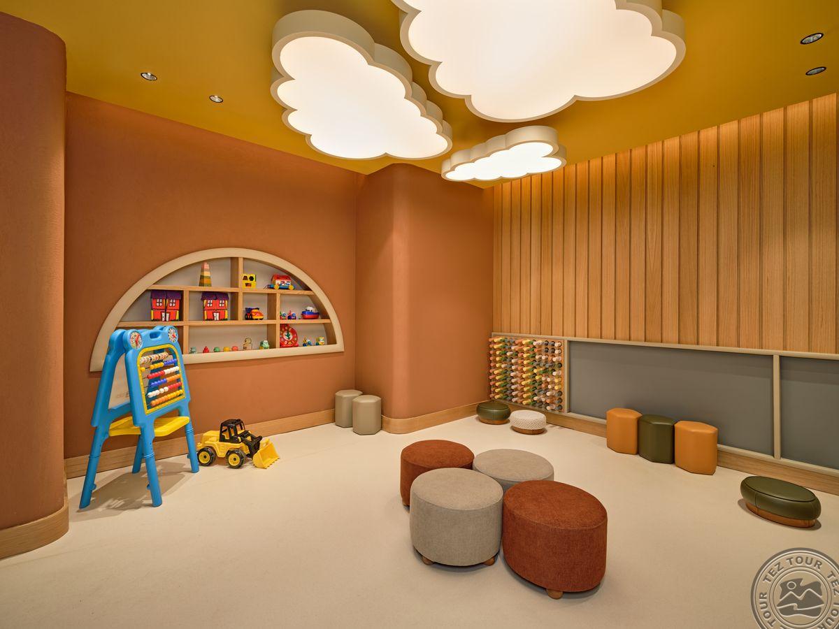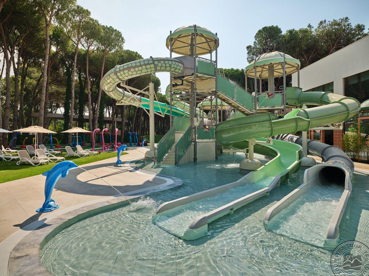 Детям:> детский клуб (4–12 лет) детский бассейн: открытый услуги няни: по запросу, платно детская площадка детский аквапарк (5 горок) клуб для подростков (13-16 лет) анимационная программа для детей детская дискотека крытый бассейн (закрыт 01.05-30.10)