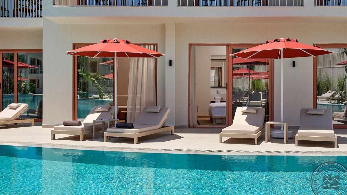 11 двухкомнатных Lagoon Suite Direct Pool Access (с выходном к бассейну, гостиная, спальня с дверью, две ванные комнаты, макс. 4 чел., 50 м2);
