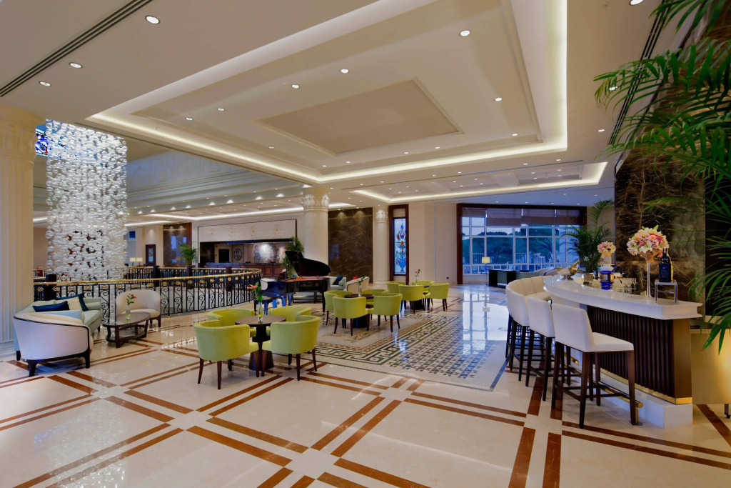 В отеле:Для гостей работает бар. Для гостей работает ресторан. Кафе отеля — удобное место для перекуса. Бесплатный Wi-Fi на территории поможет всегда оставаться на связи.; Специально для автопутешественников организована бесплатная парковка. Гостям также доступны следующие услуги: массажный кабинет, сауна, паровая баня и спа-центр. Специально к услугам гостей, не упускающих возможность заняться спортом, фитнес-центр, тренажёрный зал и настольный теннис. Готовьтесь к весёлому и насыщенному отдыху! На территории есть библиотека и пинг-понг.; Здесь будем баловать себя водными процедурами: есть бассейн, крытый бассейн и открытый бассейн. Для бизнес-мероприятий предусмотрен конференц-зал. Дети будут рады! Работает детская игровая комната. Удобно для гостей с ограниченными возможностями: на верхние этажи гостей поднимает лифт.; Гостям доступны и другие услуги. Например, прачечная, химчистка, банкомат, гладильные услуги, пресса, прокат автомобилей и сейф. Персонал отеля говорит на английском, немецком и русском.