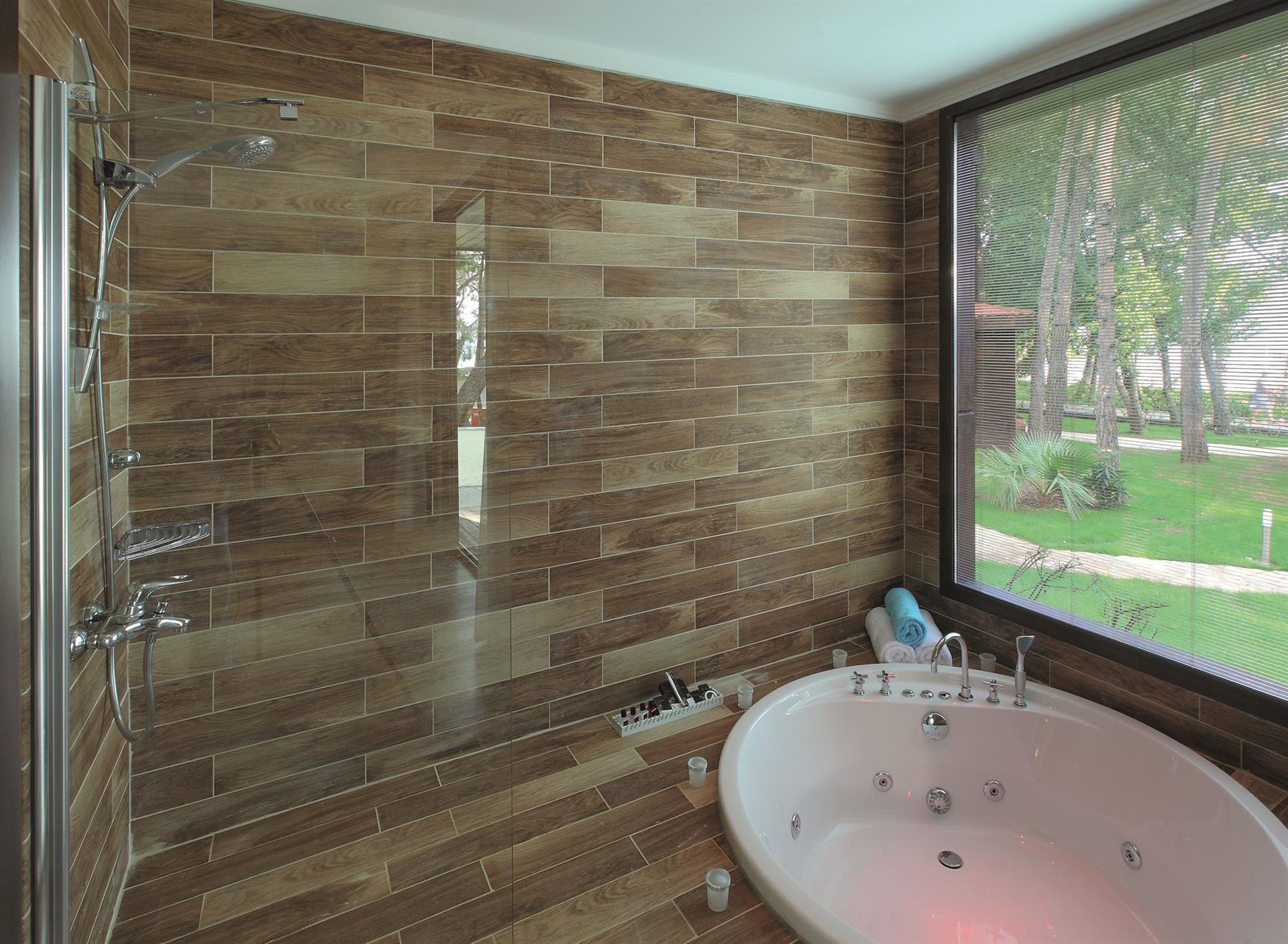 Напольное покрытие: керамическая плитка/дерево.