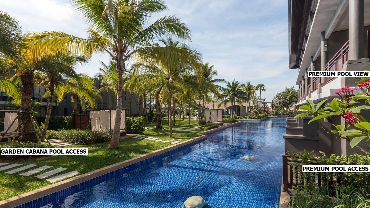 • 55 premium pool view (48 кв.м, 27 dbl king/28 dbl dbl, макс. 3/2+2 чел, 2-3 эт, вид на территорию/бассейн)