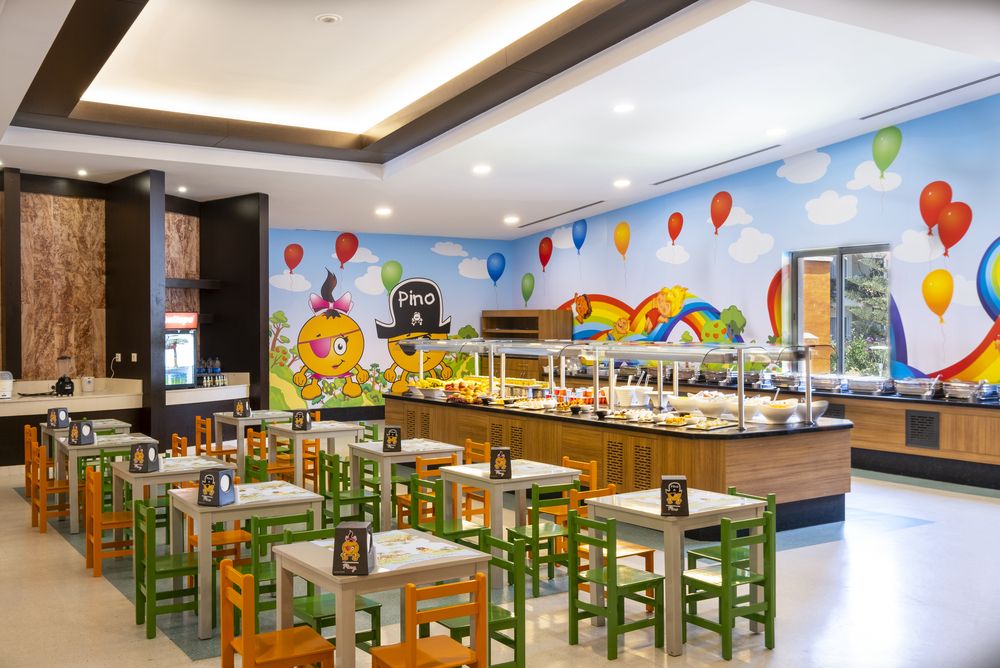 Детский бассейн, Детский клуб: "Pino Kids Kingdom", Детская площадка, Ресторан(ы) с высокими стульчиками для детей, Детское меню: (в наличии), Питание для младенцев: (в наличии), Детская кроватка: (по запросу, при наличии), Услуги няни: (по запросу - платно)