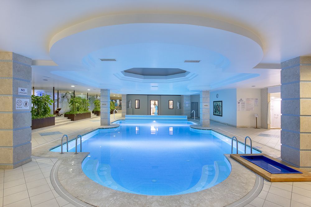 - Общее количество бассейноввосемь. Пять открытых (два с морской водой) и три крытых (с морской водой). Крытые бассейны: один в Spa-центре и один в талассо-центре – платноВнимание! В зимний сезон работает один крытый бассейн с морской водой. В холодное время года крытые бассейны - с подогревомБассейн с подогревом