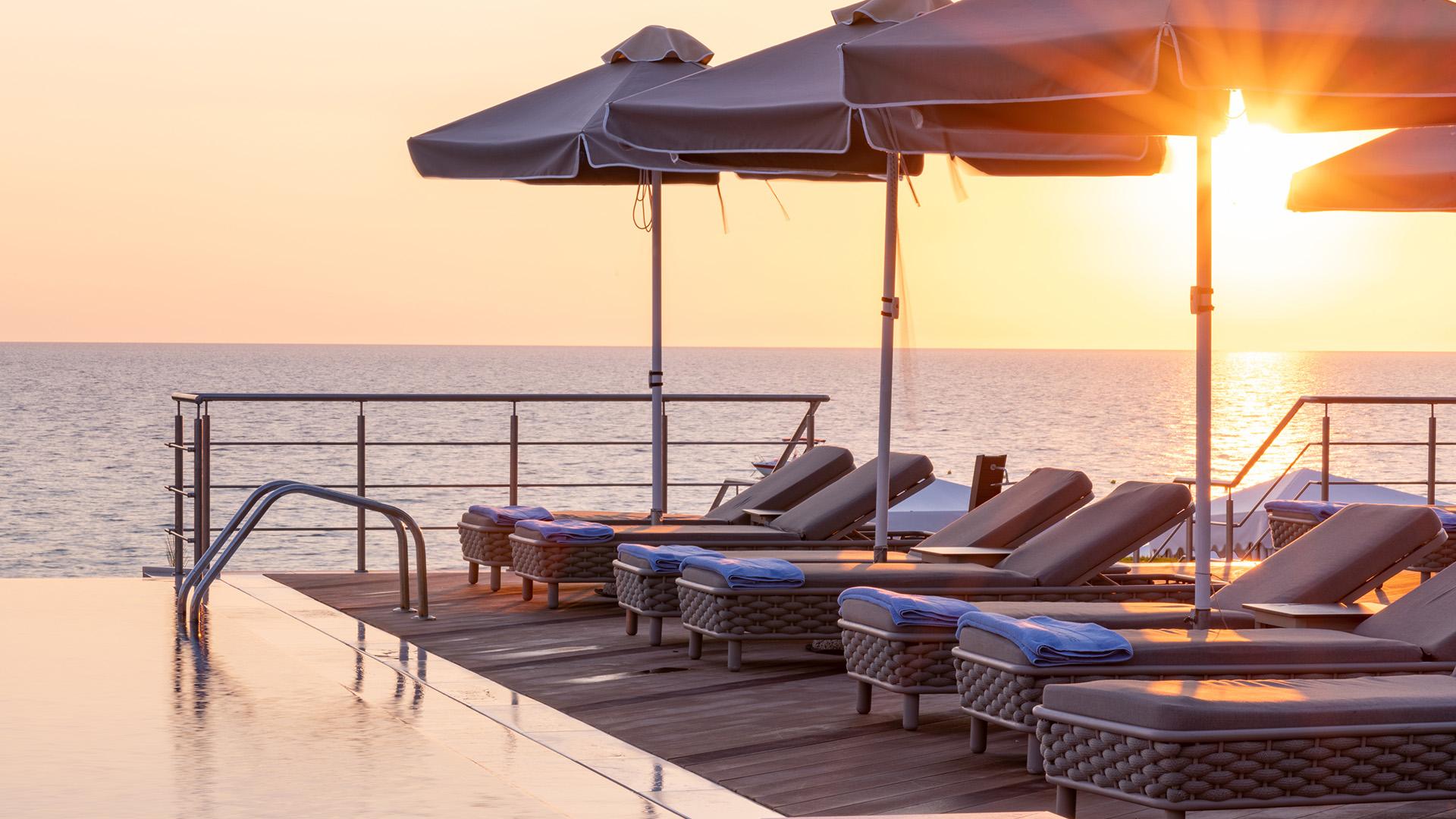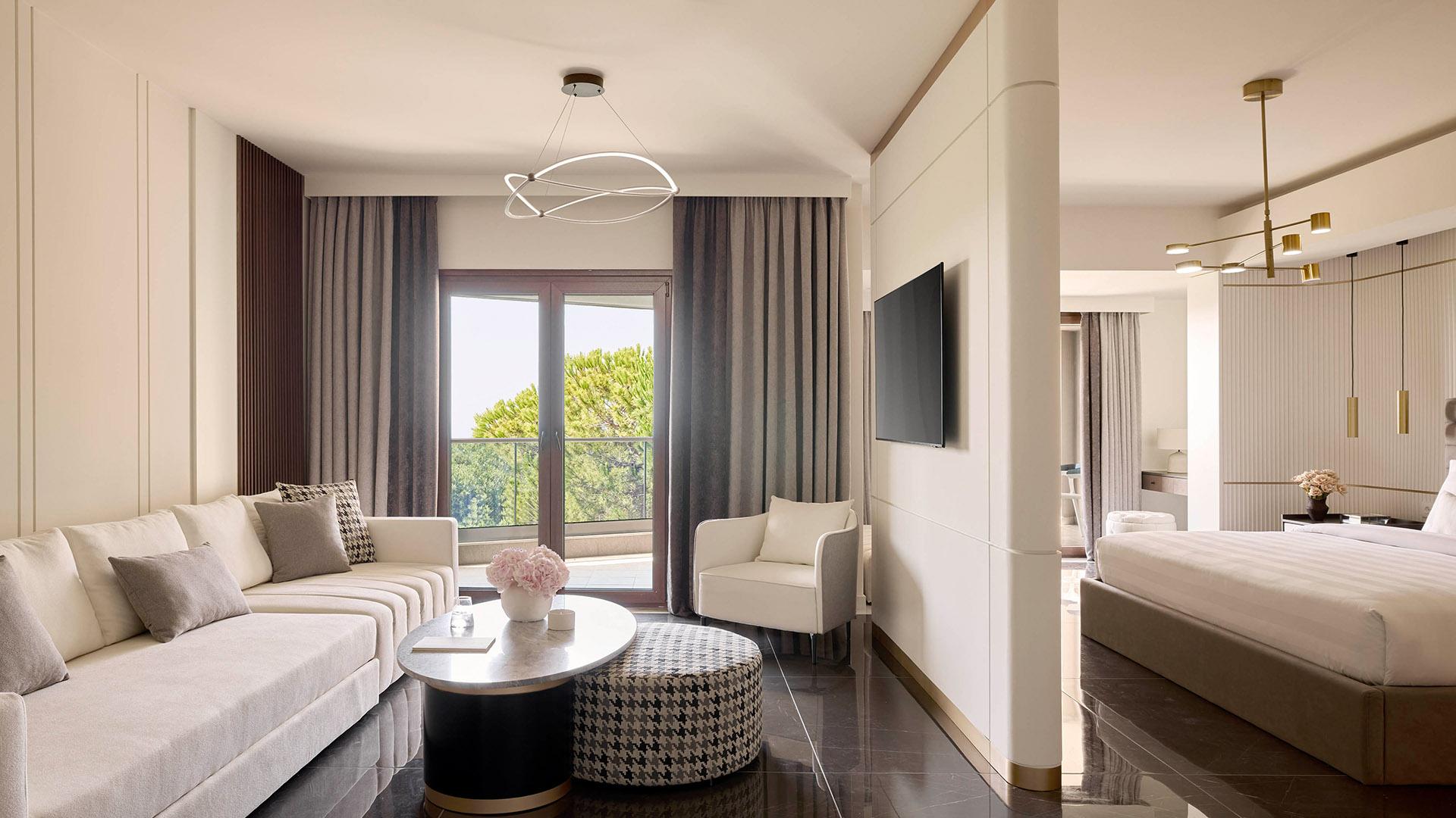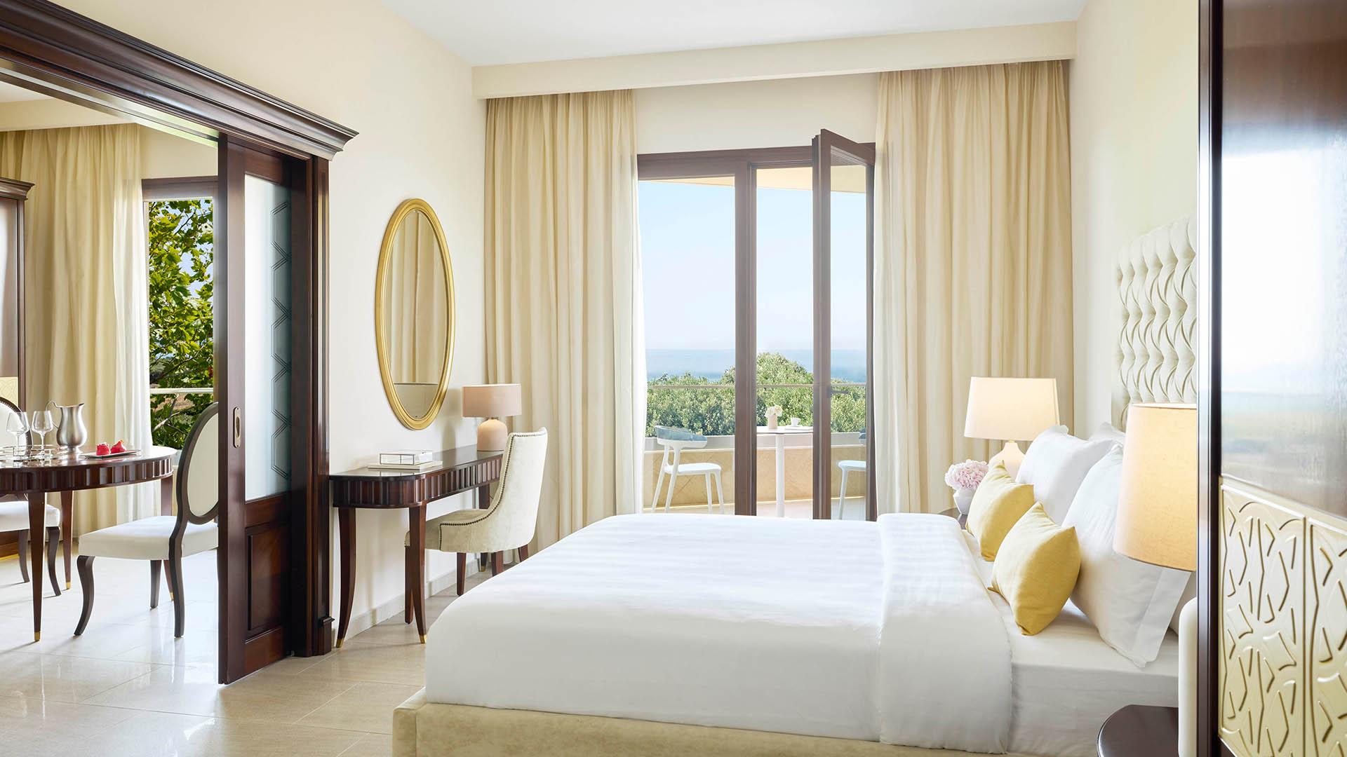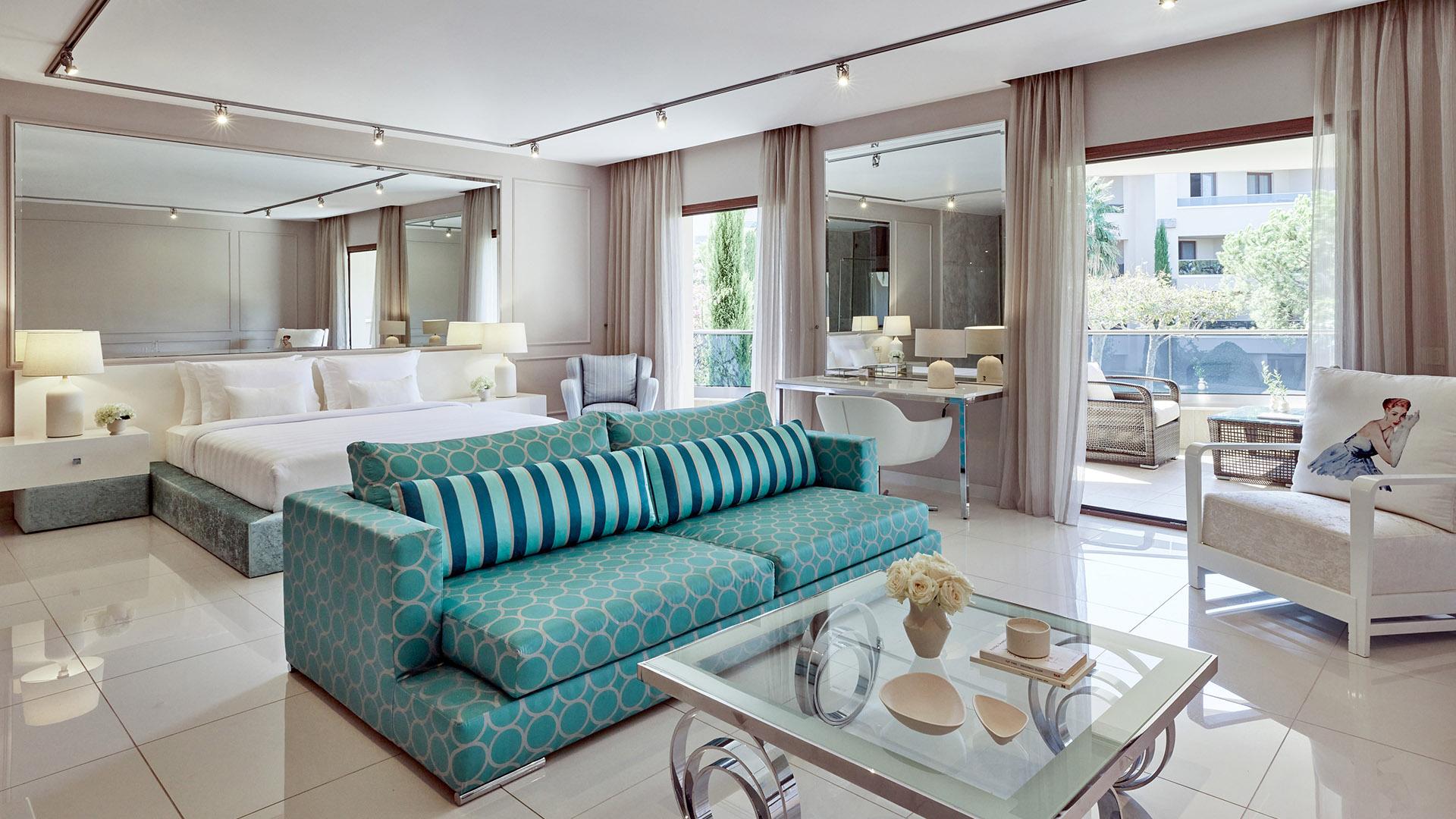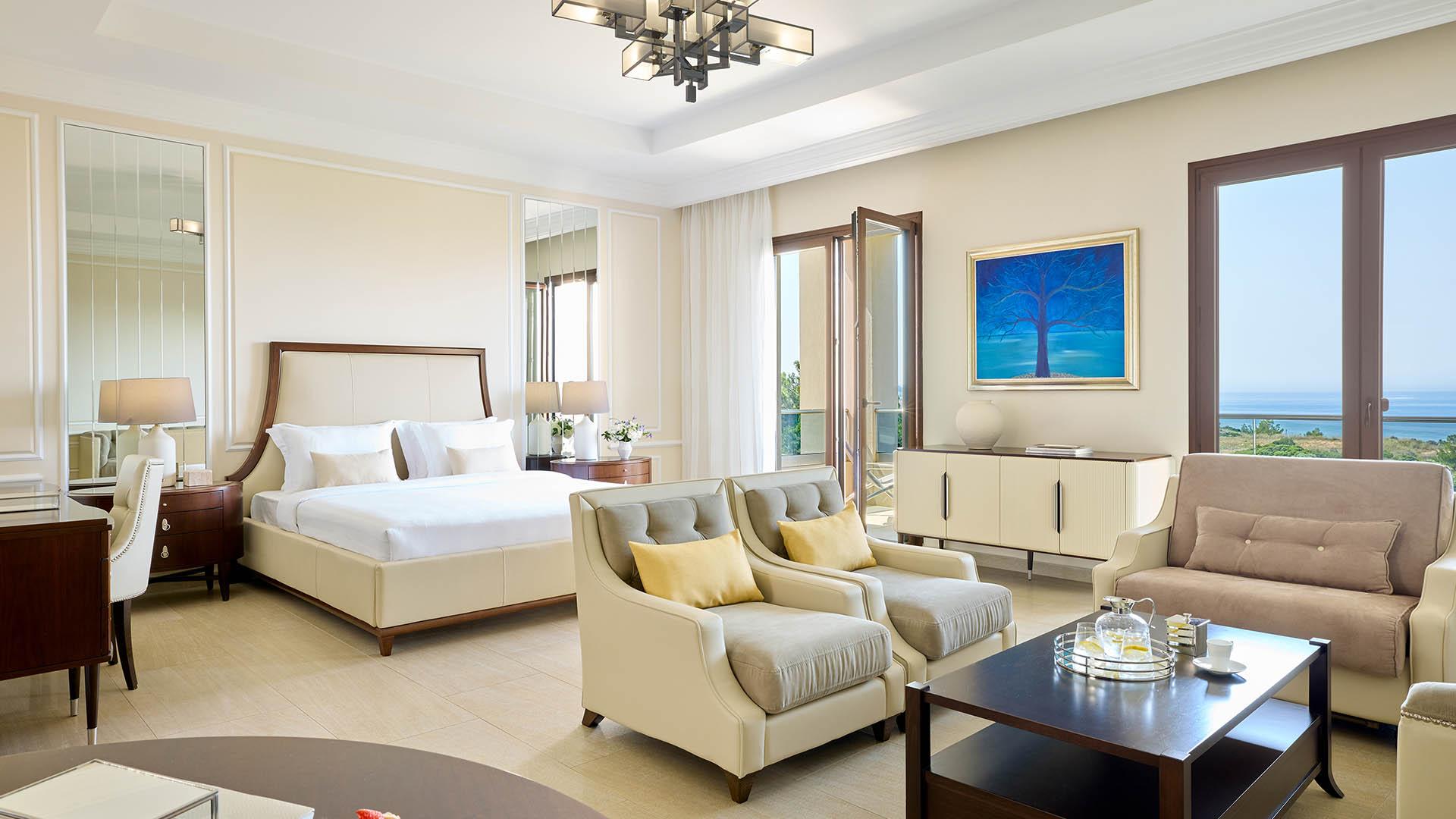 Superior Junior Suite:– 65 кв.м (макс. 3): Коллекция Luxury Suites: номер открытой планировки с кроватью king-size, диван-кровать, ванная комната с душем, увеличительное косметическое зеркало, оборудованный балкон с видом на море