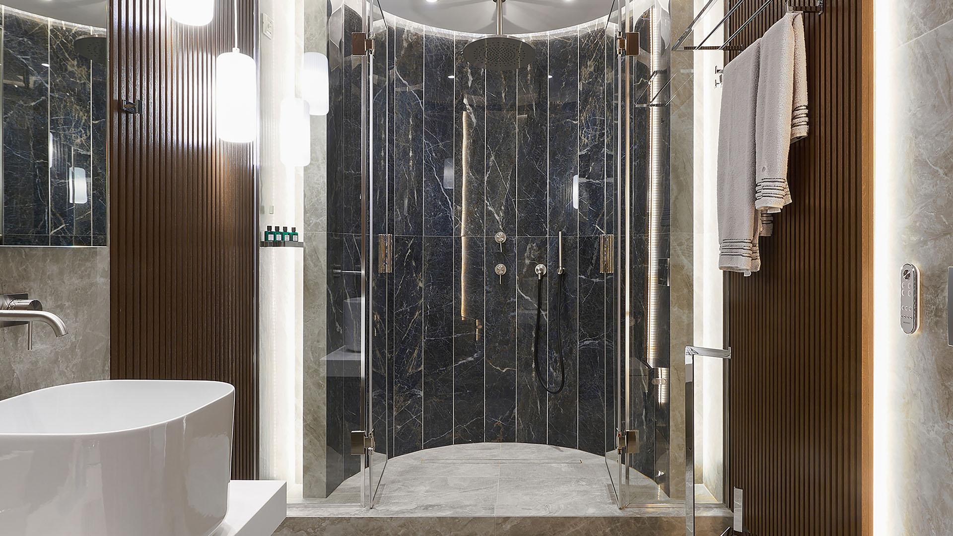 Roan Suite:– 58 кв.м (макс. 3): Коллекция Prestige Suites: спальня с кроватью king-size, отдельная гостиная с диваном-кроватью, просторная ванная с душем, оборудованный балкон с видом на сад