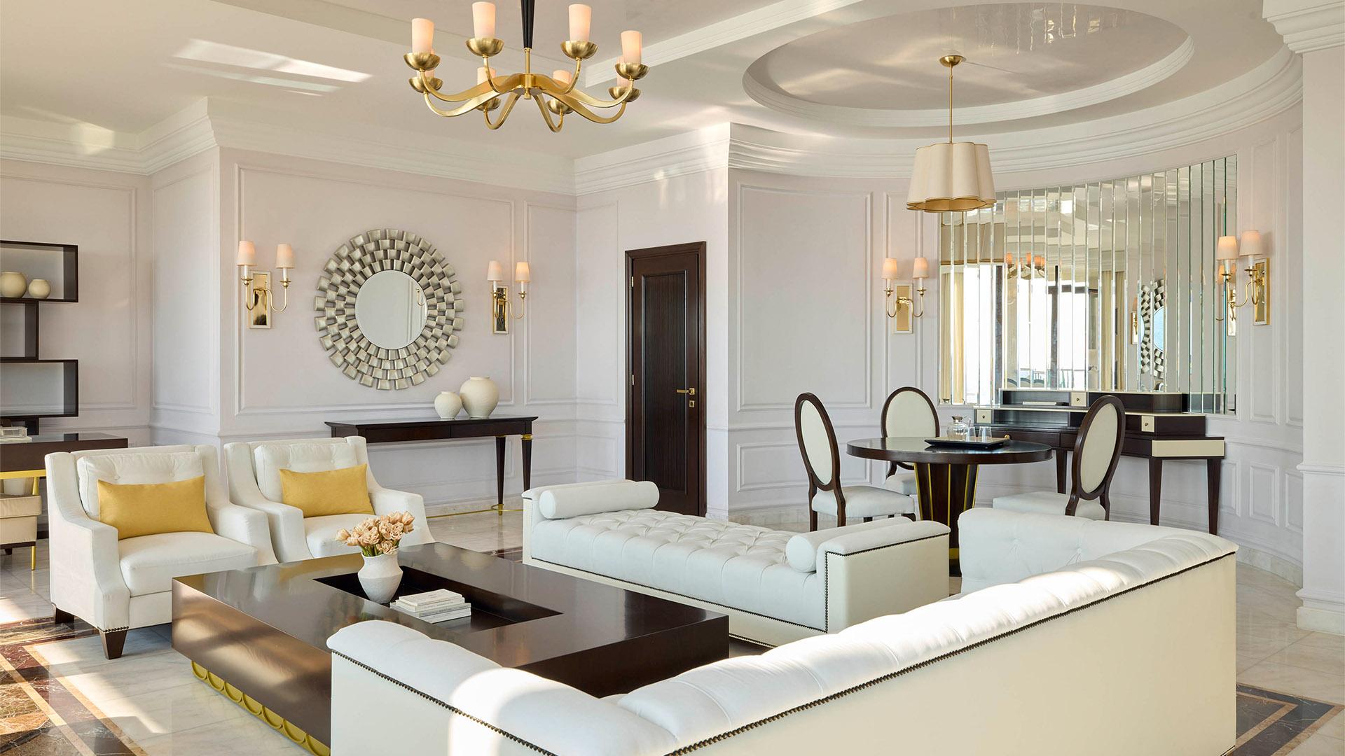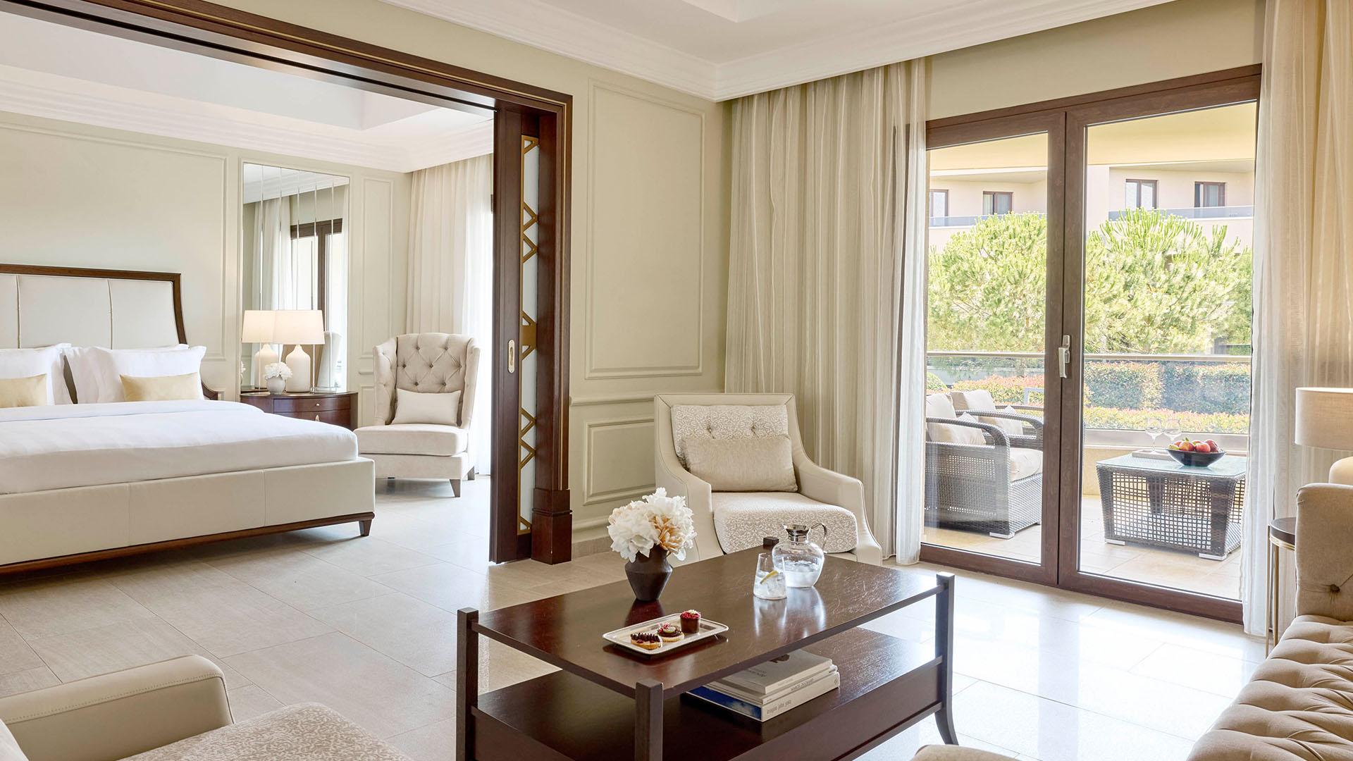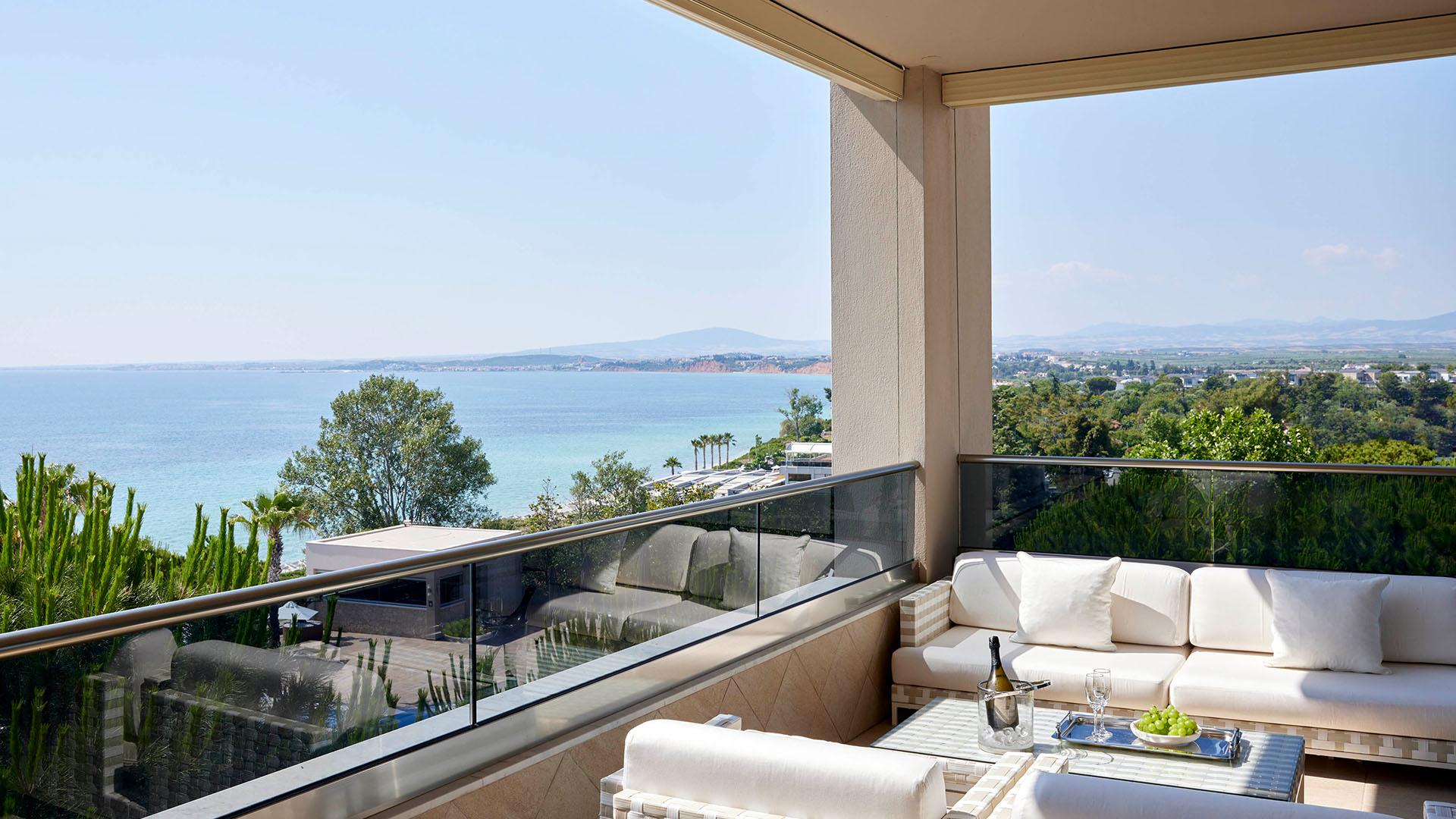 Presidential Suite:– 160 кв.м (макс. 4): Коллекция Prestige Suites: 2 раздельные спальни с кроватями king-size, отдельная гостиная, зона отдыха с обеденным столом на 4 персоны, 2 ванные комнаты ванной или душевой, просторные балконы с панорамным видом на море