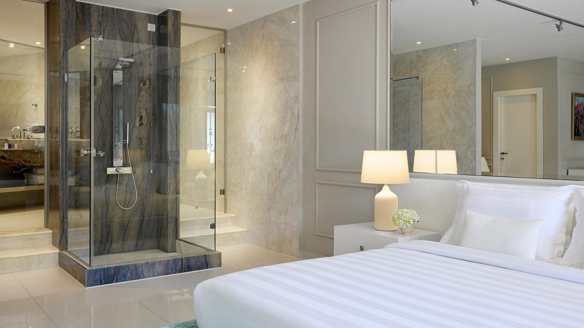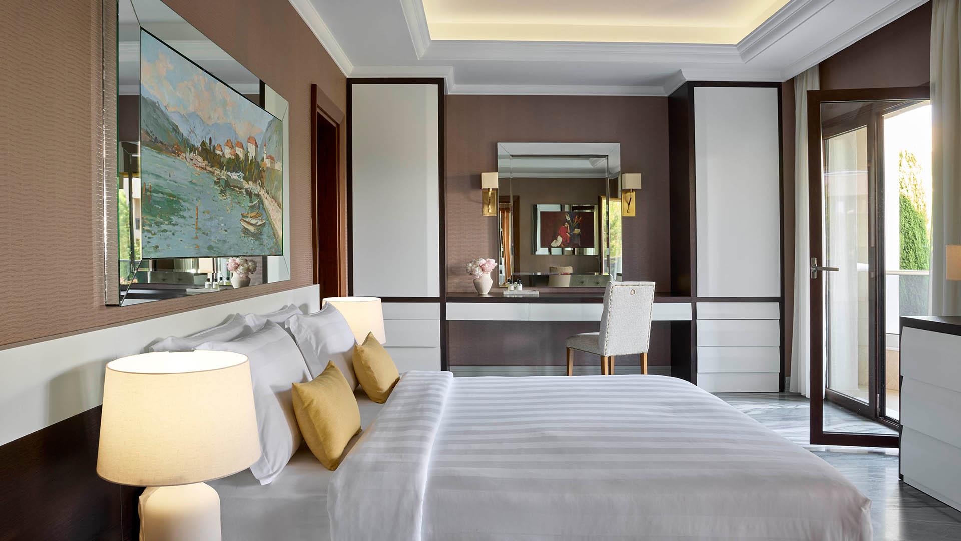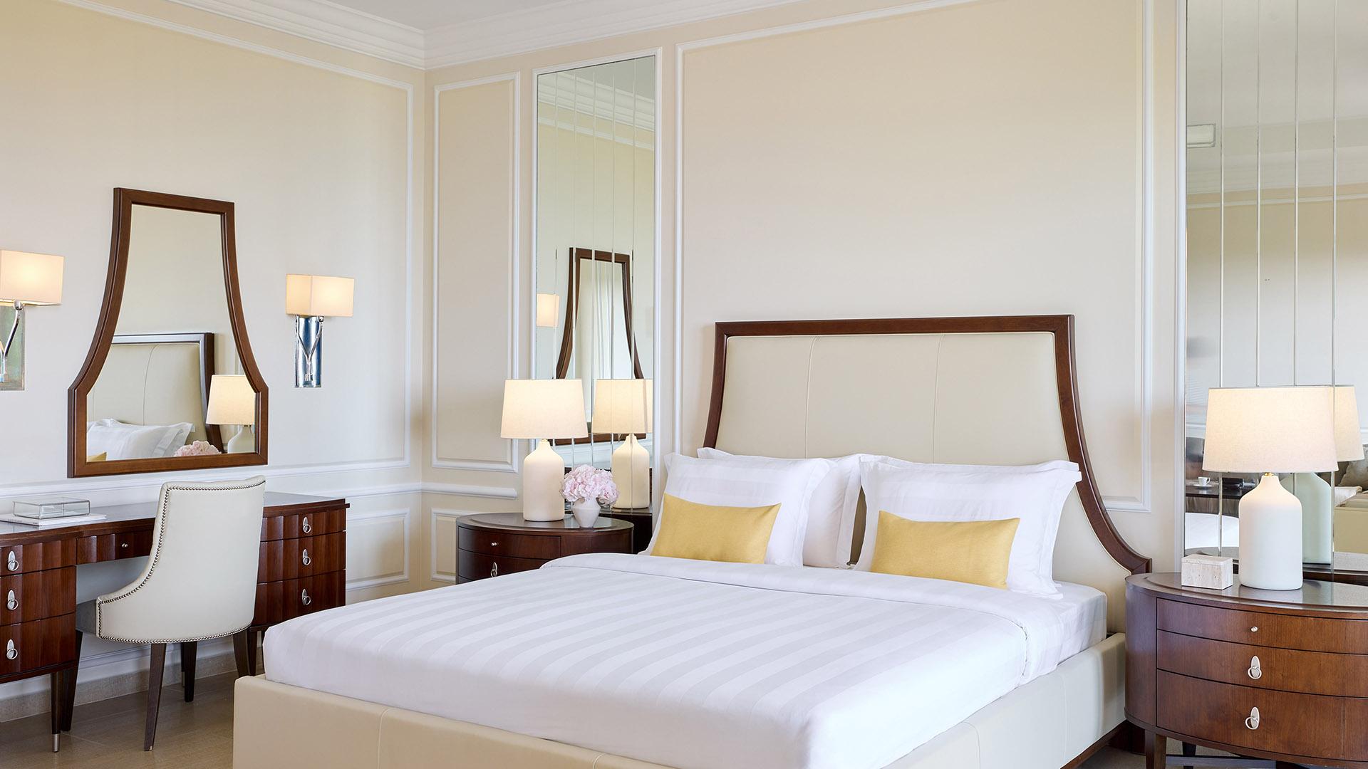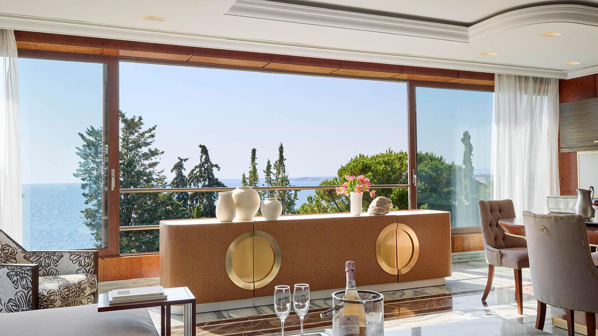 Presidential Suite:– 160 кв.м (макс. 4): Коллекция Prestige Suites: 2 раздельные спальни с кроватями king-size, отдельная гостиная, зона отдыха с обеденным столом на 4 персоны, 2 ванные комнаты ванной или душевой, просторные балконы с панорамным видом на море