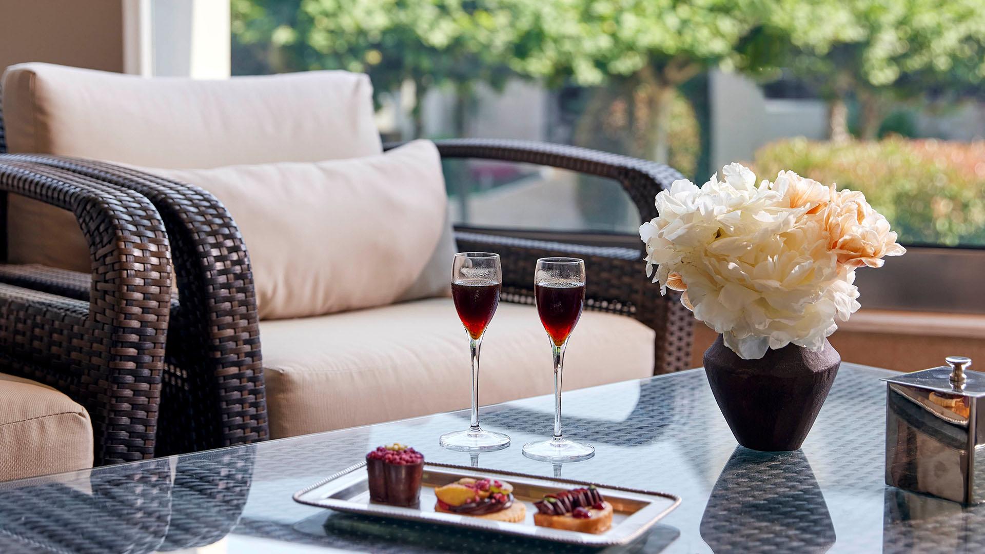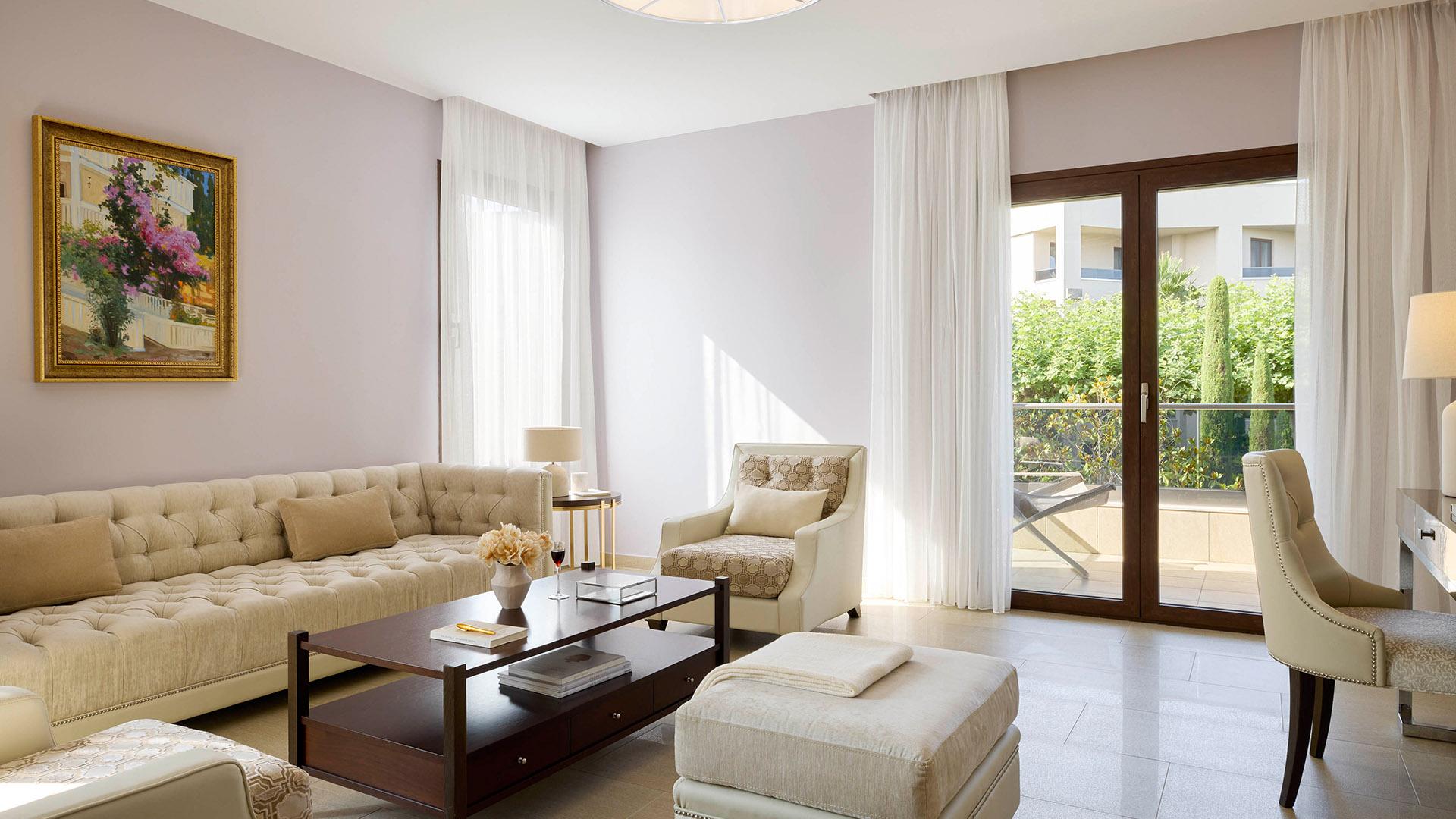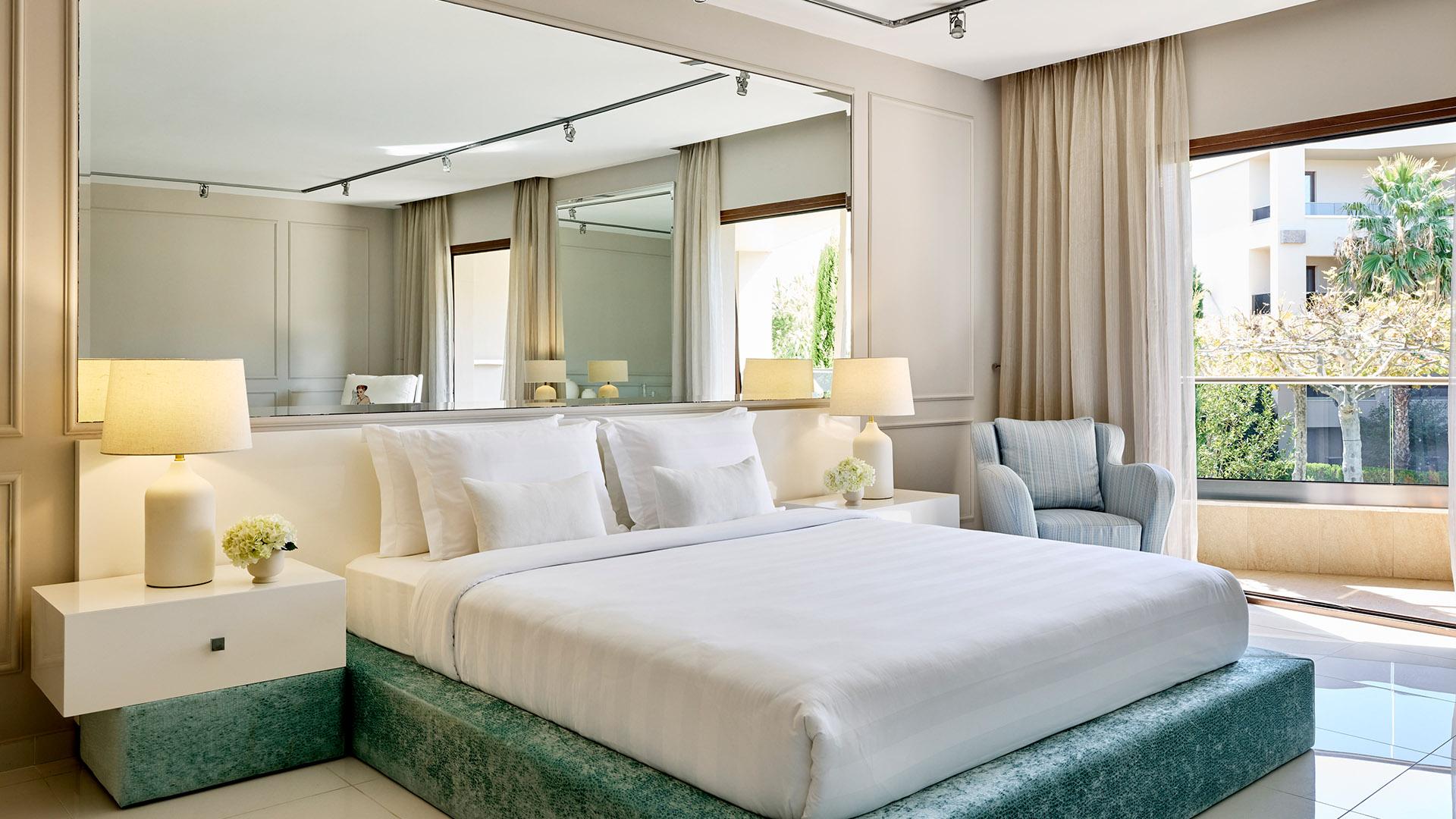 Elegant Room Garden View:– 30 кв.м (макс. 3): Коллекция Elegant Rooms: обновлен в 2024 г; номер с кроватью king-size либо 2 односпальными кроватями, комфортабельный диван, ванная с гидромассажем, оборудованная терраса или балкон с видом на сад