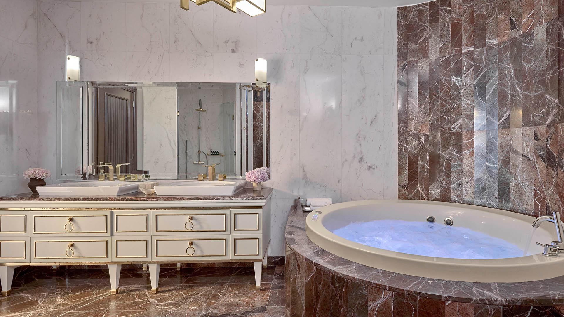 Moscow Suite:– 167 кв.м (макс. 4): Коллекция Prestige Suites: собственный лифт, 2 спальные комнаты с кроватями king-size, отдельная гостиная с 2 диванами-кроватями, обеденная зона с холодильником, 2 ванные комнаты с гидромассажем, 3-я гостевая ванная с душе, оборудованный балкон с панорамным видом на море