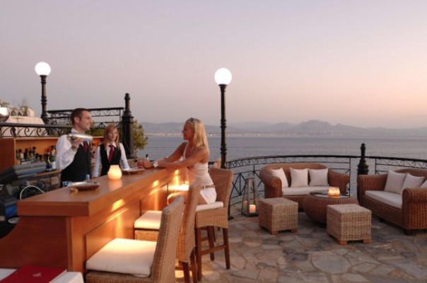 основной ресторан Amfitryon, гриль-ресторан у моря Poseidon, таверна у моря Triaina, ресторан с живой музыкой и бар Nafsika, бистро Neptune, бар Apollo, бар у бассейна, бар Artemis, традиционное греческое «кафенио»