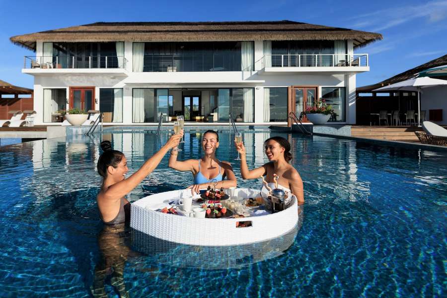 - (01) Four Bedroom Ocean Pool Retreat (Общая площадь 1474 кв.м. Площадь виллы 1169 кв.м) Роскошная двухуровневая водная вилла с четырьмя спальнями и бассейном. На нижнем уровне расположена гостиная, столовая, кухня, игровая комната, две спальни с собственными ванными комнатами, спальня для прислуги, просторная терраса с зонами отдыха и бассейном 17,5 м. На верхнем уровне расположена гостиная, две спальни с собственными ванными комнатами, тренажёрный зал.